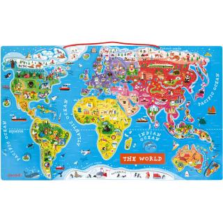 Τώρα η γεωγραφία μαθαίνεται με τον πιο απολαυστικό τρόπο! Ο μαγνητικός χάρτης παζλ αποτελείται από 92 μαγνητικά ξύλινα κομμάτια. Το κάθε κομμάτι αντιπροσωπεύει μια χώρα του κόσμου, καθώς πάνω του έχει τυπωμένα το όνομα, την πρωτεύουσα και μια χαρακτηριστική εικόνα της συγκεκριμένης χώρας. Ο μεγάλος μαγνητικός χάρτης αναπαριστά τον κόσμο με τις ηπείρους και τους ωκεανούς του. Όταν μπουν όλα στη σωστή τους θέση, δημιουργείται ένας πανέμορφος πίνακας με τον παγκόσμιο χάρτη, που θα μπορείτε να κρεμάσετε στον τοίχο για να ομορφύνετε τον χώρο σας! Όλα τα κείμενα στον χάρτη είναι στα αγγλικά. Κατάλληλο από 7 ετών.