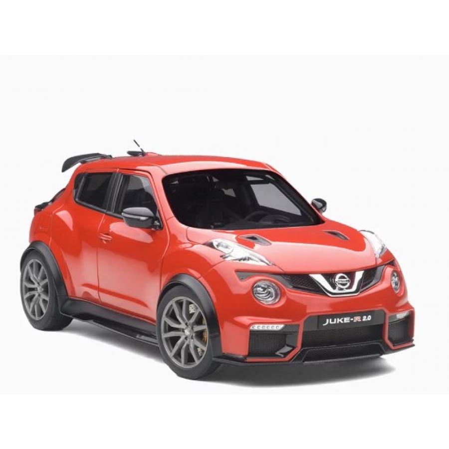 Το Autoart Nissan Juke-R 2.0 1:18 Red είναι ένα συλλεκτικό μοντέλο υψηλής ποιότητας που αναπαριστά την εξαιρετικά σπάνια και πανίσχυρη έκδοση Nissan Juke-R 2.0, το crossover-supercar με τον κινητήρα του GT-R. Η Autoart το αποδίδει με λεπτομέρεια, χρησιμοποιώντας die-cast ή composite υλικά, ρεαλιστική βαφή και πλήρως λειτουργικά ανοιγόμενα μέρη όπως καπό, πόρτες και πορτμπαγκάζ. Το μοντέλο διαθέτει πιστή αναπαράσταση του V6 twin-turbo κινητήρα, ρεαλιστικό αγωνιστικό εσωτερικό με roll cage και bucket καθίσματα, καθώς και λεπτομέρειες στο αμάξωμα όπως αεροδυναμικά βοηθήματα και carbon υφές. Το πραγματικό Juke-R 2.0 αποδίδει περίπου 600 ίππους, βασίζεται στο GT-R R35 και έχει παραχθεί σε ελάχιστα κομμάτια, καθιστώντας και το μοντέλο της Autoart ιδιαίτερα δημοφιλές στους συλλέκτες.