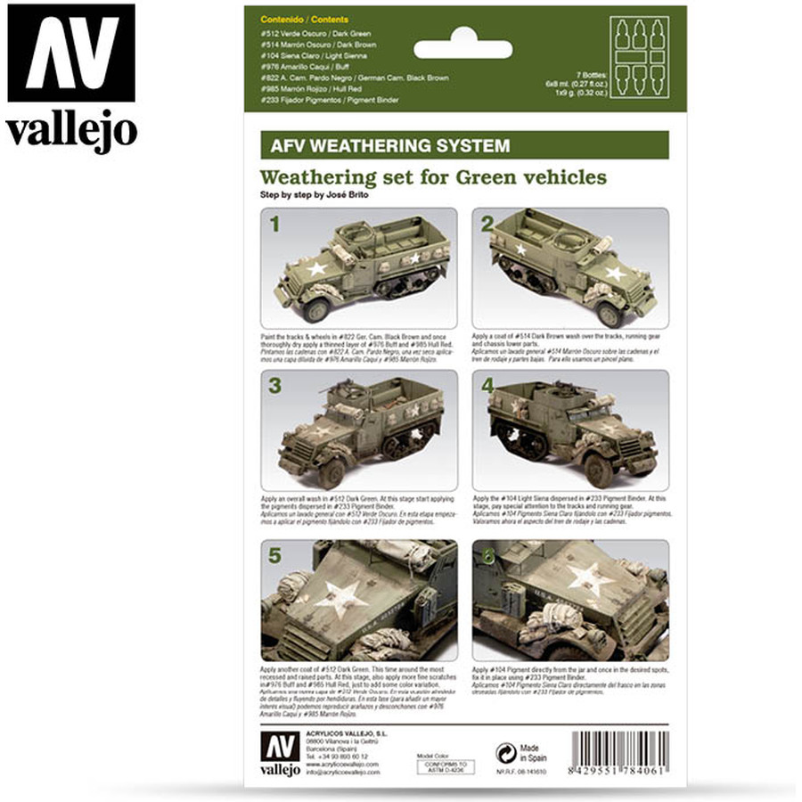 AFV Weathering System - Vallejo 6x8ml+1 Air Colour Set - Weathering Set For Gre