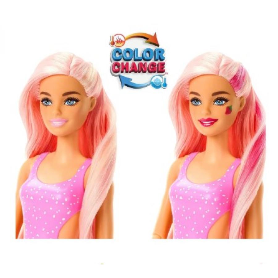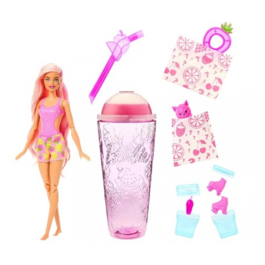 Με 8 εκπλήξεις σε ένα πακέτο, οι κούκλες της σειράς Barbie Pop Reveal Fruit Series προσφέρουν μια αισθητηριακή εμπειρία ανοίγματος κουτιού με θέμα τα φρούτα! Τα παιδιά αφαιρούν το εξωτερικό στρώμα της συσκευασίας, ανοίγουν το κύπελλο και βγάζουν τα σακουλάκια έκπληξη, στη συνέχεια βιδώνουν το καπάκι και ανοίγουν το καπάκι με το κομμάτι που μοιάζει με καλαμάκι για να απελευθερώσουν το λιπαρό, μοβ Slime πάνω από τα παγάκια! Βγάλτε το κουτί για να βρείτε μια κούκλα Barbie με άρωμα και δυνατότητα τοποθέτησης, ένα μαλακό και αρωματισμένο σκυλάκι και αξεσουάρ που ταιριάζουν με το θέμα της γεύσης φρούτων! Ανακαλύψτε πρόσθετα κομμάτια μέσα στα παγάκια που πραγματικά "σκάνε", όπως ένα μίνι ποτό και πατίνια για την κούκλα Barbie - χρησιμοποιήστε τα για αποθήκευση ή για επαναλαμβανόμενες αποκαλύψεις!