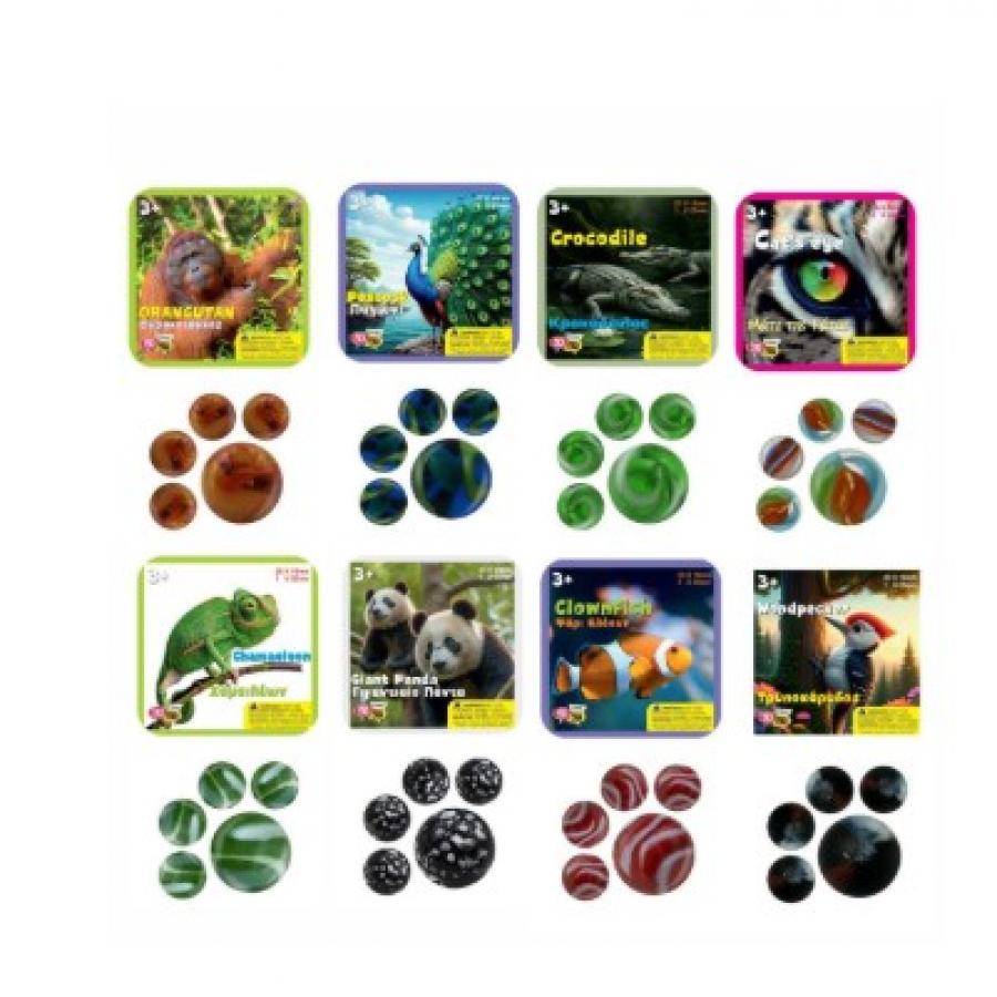 Με πάνω από 70 διαφορετικά σχέδια και χρώματα, κάθε σετ είναι τυχαίας επιλογής, κάνοντας κάθε αγορά μοναδική. Οι βόλοι ξεχωρίζουν για τη λάμψη τους, τα εντυπωσιακά μοτίβα και την προσεγμένη κατασκευή από 100% γυαλί, θυμίζοντας μικρά έργα τέχνης. Είναι ιδανικοί για ανταλλαγές με φίλους, παιχνίδια δεξιοτεχνίας ή απλώς για να εμπλουτίσεις τη συλλογή σου. Ένα παιχνίδι που δεν έχει ηλικία και παραμένει αγαπημένο από γενιά σε γενιά.