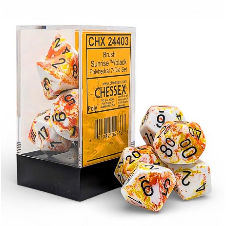 Chessex 24403 Brush Sunrise Black Polythedral 7-Die Set