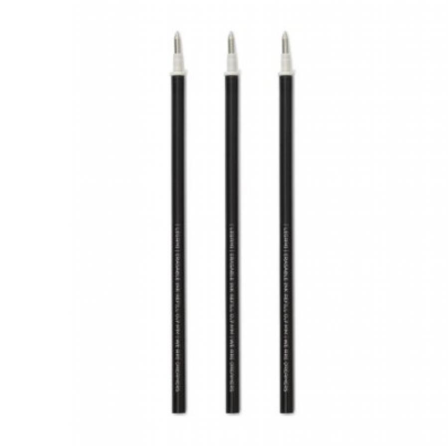 Μήπως τελείωσε το μελάνι του αγαπημένου σας στυλό που σβήνει; Μην το πετάξετε: συμπληρώστε το! Τρία ανταλλακτικά μαύρου μελανιού για στυλό Legami που σβήνουν. Θέλετε μια αλλαγή; Συνδυάστε και ταιριάξτε τις κασέτες για να χρησιμοποιήσετε το στυλό σας σε ένα ολοκαίνουργιο χρώμα!