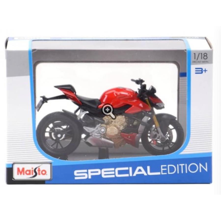 The Maisto MotorCycle Special Edition Ducati Super Naked V4 S 1:18 scale miniature is a highly detailed model of the iconic Ducati Super Naked V4 S motorcycle.