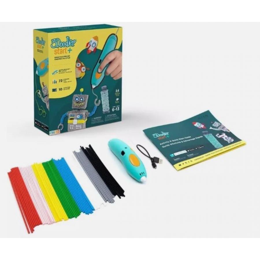 3Doodler START+ Essentials Pen Set Kids bring ideas to life in 3D with this award-winning Pen Set! Plastic extrudes and hardens rapidly allowing kids to literally create anything. Child-Safe 3D Pen: Pen nozzle and plastic can safely be touched with no risk of burning, completely safe for kids ages 6-13. Perfect for STEM Learning: Inspires creativity, design, planning, building and spatial understanding. Wireless use for 45mins to an hour. Biodegradable 3Doodler Start Plastic, made entirely from BPA-Free, Non-Toxic materials. This set includes: 3Doodler Start+3D Printing Pen x1, Micro USB Charge Cord x1, 3Doodler Start Eco-Plastic Strands x72, 3Doodler Start Activity Guide x1.
