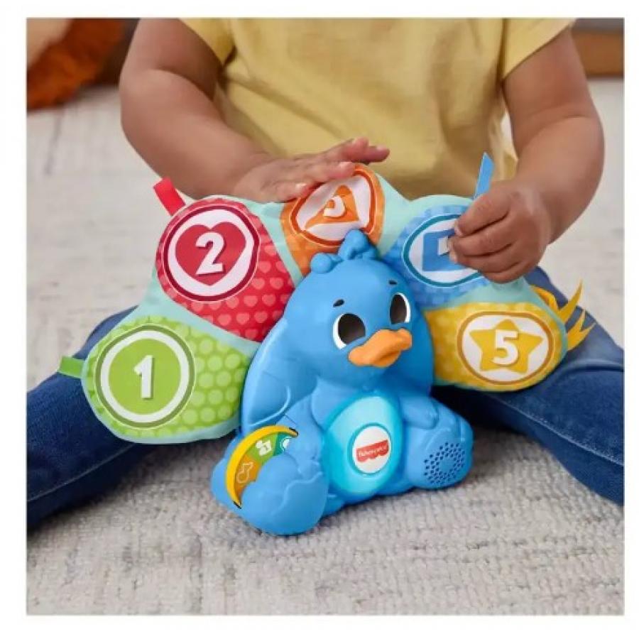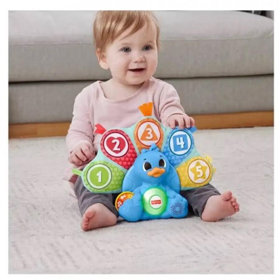 The Fisher-Price® Linkimals™ Counting & Colors Peacock™ toy is an interactive feathered friend that introduces your baby to numbers and counting, colors, shapes and kindness through exciting play. Babies can squeeze the 5 colorful tail feathers or spin the wheel to activate fun songs, sounds, phrases and colorful lights. And when this proud peacock is combined with other Linkimals™ toys, they light up, talk, sing and play together!