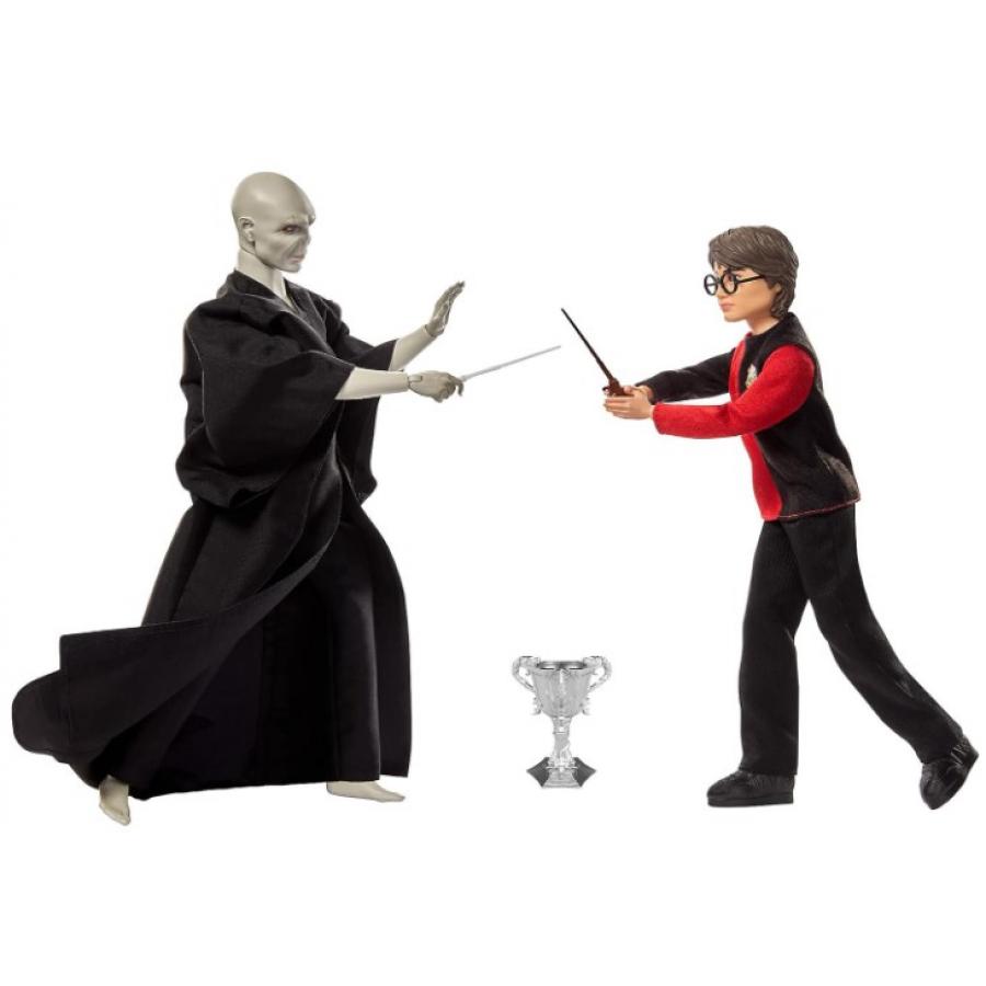 Travel back to Hogwarts™ and relive an iconic scene with two Harry Potter™ dolls in a collectible set! Fans and collectors can recreate the epic duel between Harry Potter™ and Lord Voldemort™ with dolls inspired by their characters in Harry Potter and the Goblet of Fire™. Harry Potter™ doll and Voldemort™ doll look just like their onscreen characters, and specially designed packaging sets the scene in the graveyard at Riddle Manor. A Triwizard Cup accessory is included, and both dolls come with a personalized wand inspired by the one their character uses in the film. With flexibility at the neck, shoulders, hips, knees, elbows and wrists, Harry Potter™ doll and his infamous adversary can strike spellbinding poses or battle it out in a scene recreation. Fans aged 6 years and older can collect more Harry Potter™ dolls and toys to build out the wizarding world and create their own magical stories! Colors and decorations may vary.