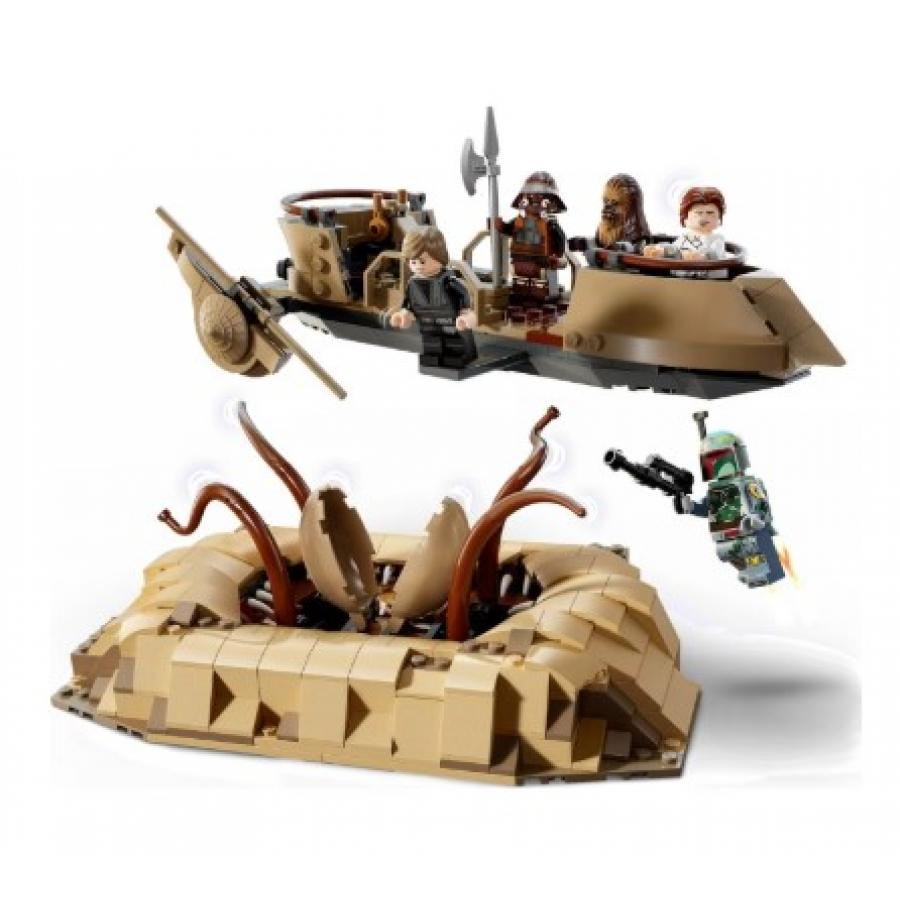 Relive Luke Skywalker's escape from the Sarlacc pit in Star Wars: Return of the Jedi. Jump from the desert skiff and engage in lightsaber combat. With Chewbacca and Han Solo, save Carlissian before he's eaten by the Sarlacc! Send Boba Fett flying wildly with his jetpack! The set also includes a Nien Nunb minifigure for the 25th anniversary of LEGO® Star Wars™!