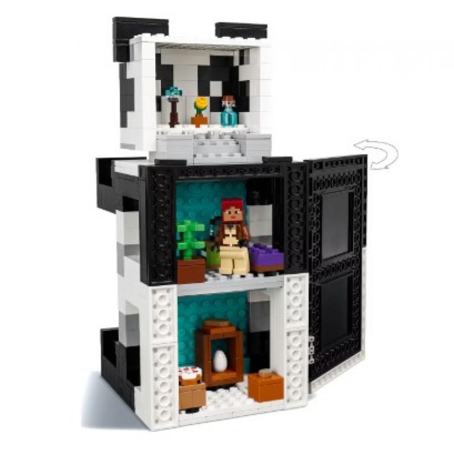 If you love all things Minecraft®, you'll love this 3-story panda house! Open the back to reveal the various rooms, each filled with cool accessories for creative fun. Want a change? Remodel the panda house so it sits or stands on all 4 legs! Head out into the bamboo jungle with an explorer. Feed cake to a panda and a baby panda, but watch out for the skeleton holding a bow!