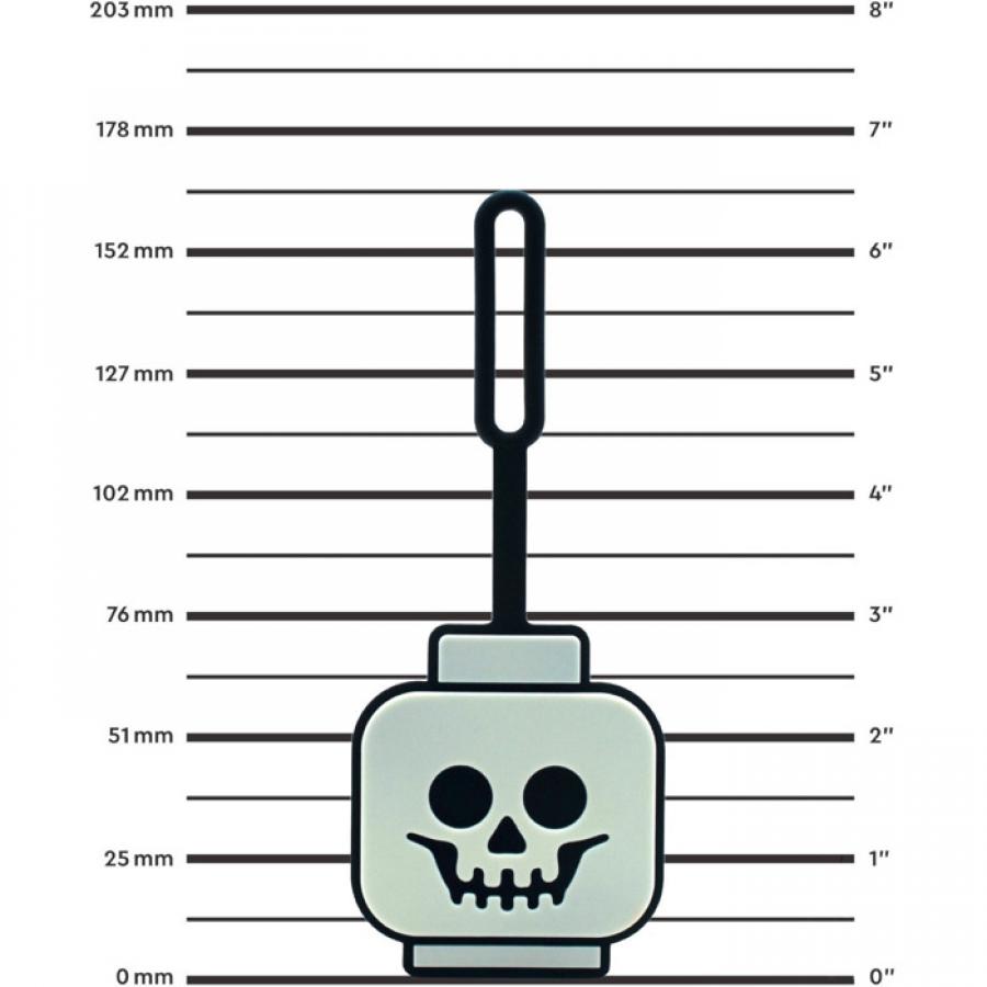 Glow-in-the-Dark Luggage Tag – Flexible, 100% silicone luggage tag with a glow-in-the-dark illustration of a LEGO® minifigure skeleton head.