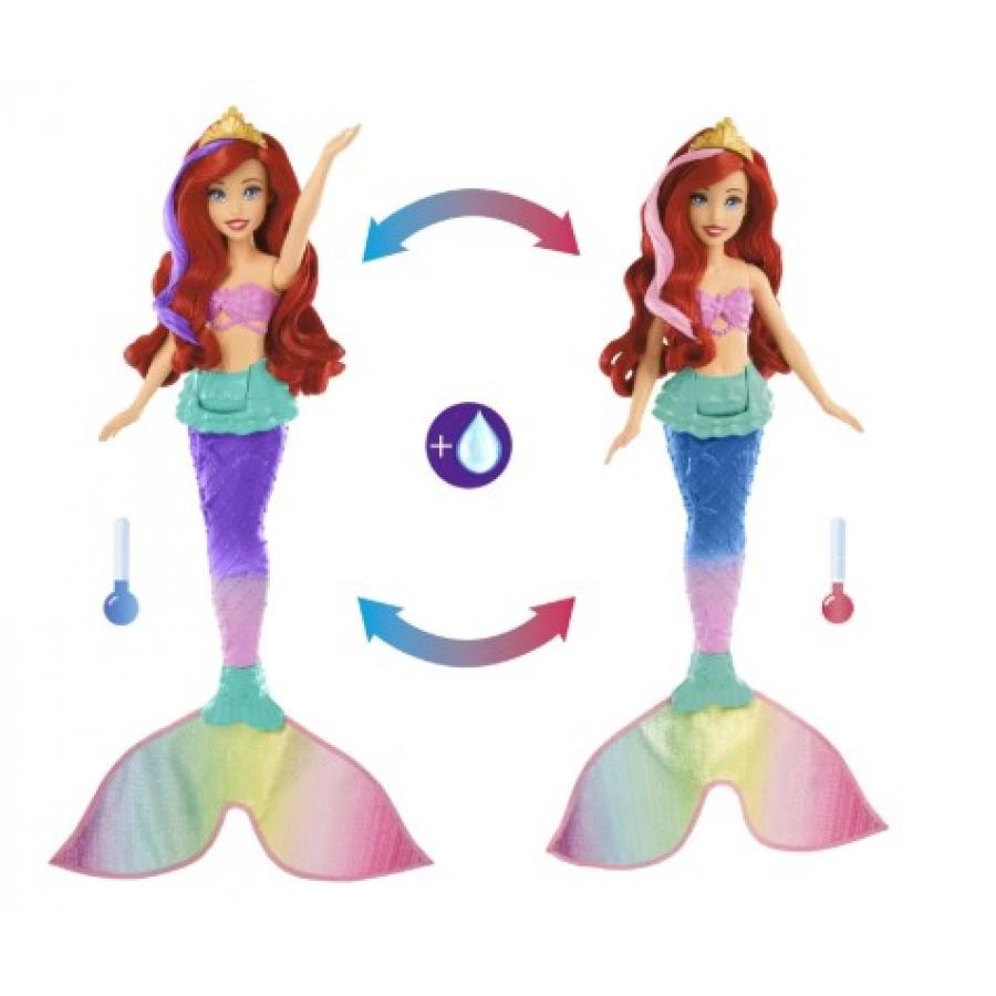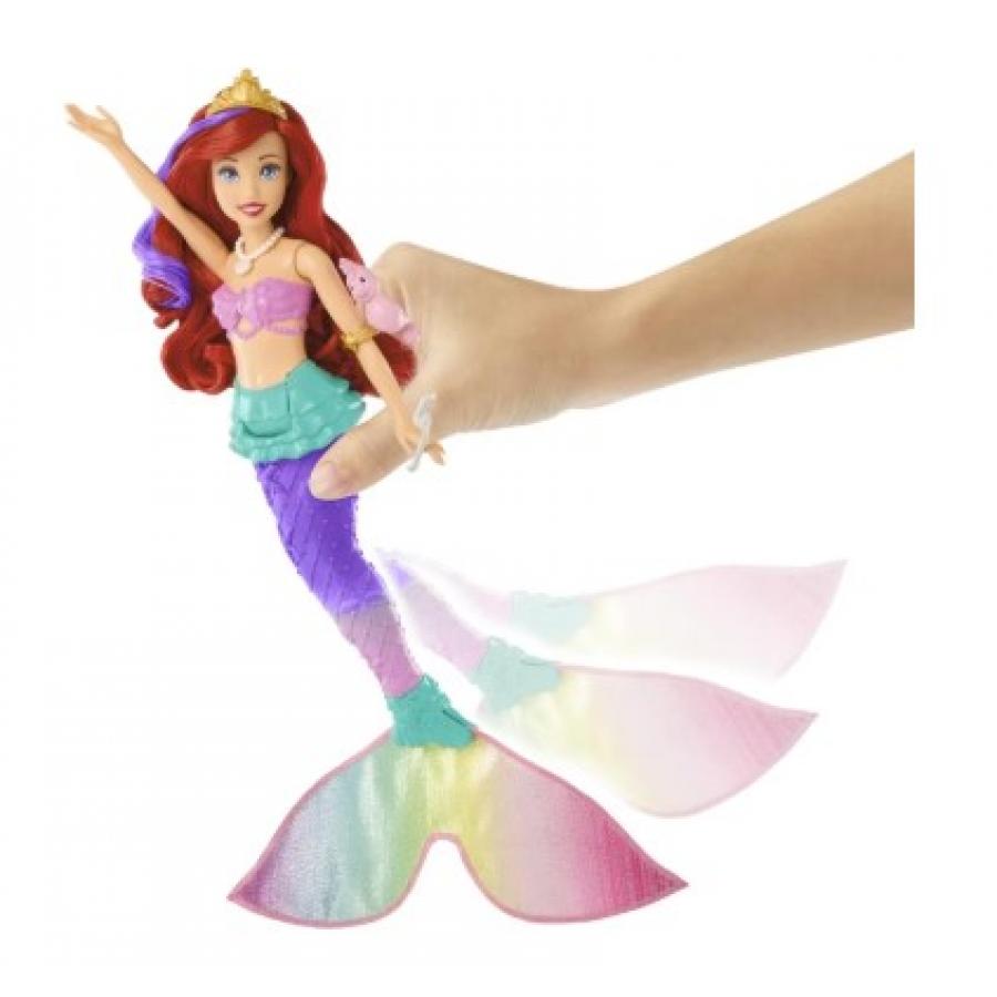 Inspired by Disney's The Little Mermaid, this mermaid doll is a real-life swimmer and color-changing toy! Press the doll's hips to make the mermaid's tail bob up and down, as if she were really swimming! You can put her seahorse friend in her hand for even more fun. The doll's hair and tail change color when submerged in water. The doll cannot stand up on its own. Colors and patterns may vary. With realistic swimming action and color-changing features, you'll have fun imagining a world under the waves with the Magical Mermaid, inspired by the Disney movie!