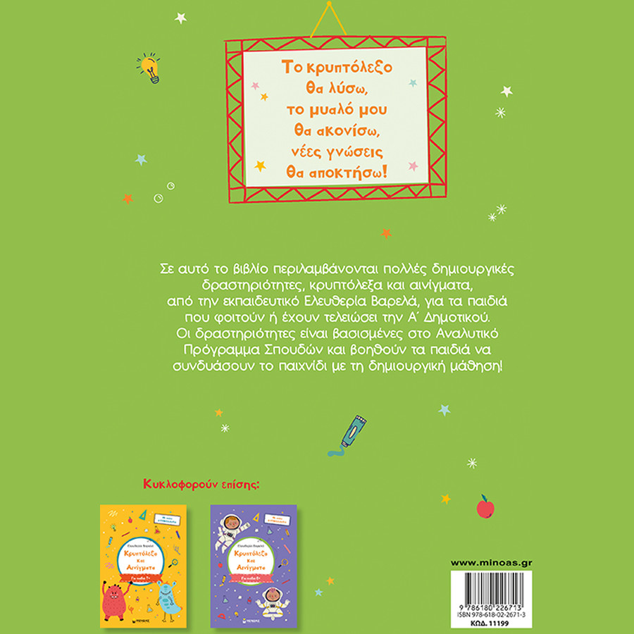 Κρυπτόλεξα και Αινίγματα (6+), Ελευθερία Βαρελά - Εκδόσεις Μίνωας