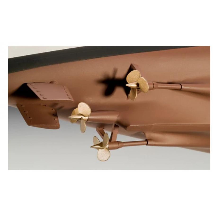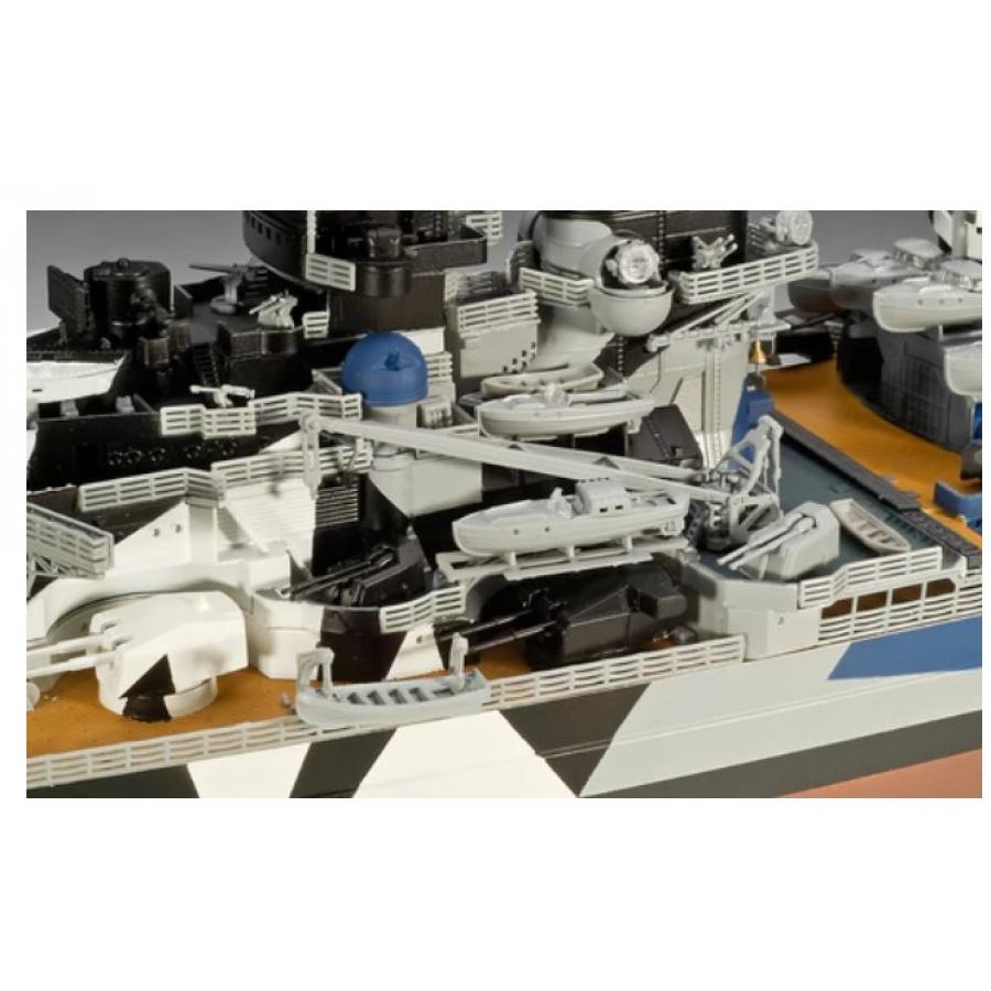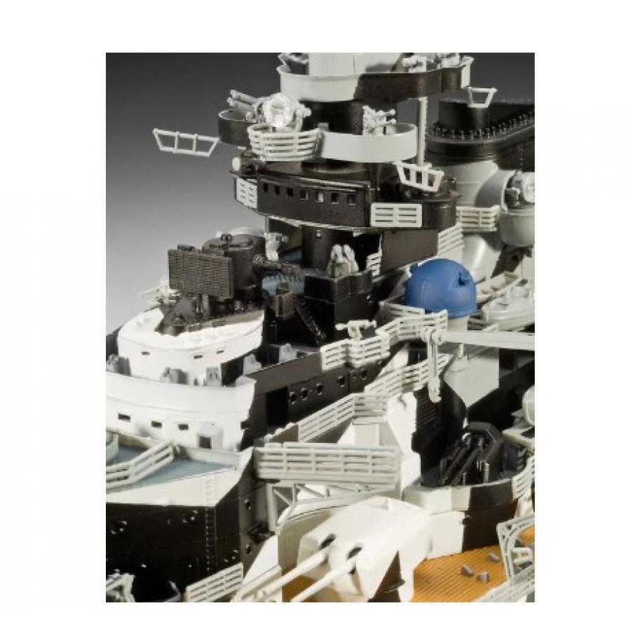 What makes this model kit truly unique are its myriad of special features. The highly detailed design of the hull and drive shafts gives the model an unparalleled authenticity. The individually movable 38 cm gun turrets and the numerous anti-aircraft guns make the heart of every precision mechanic beat faster. In addition, the aircraft hangar doors, which can be opened or closed, offer an extra dose of realism.