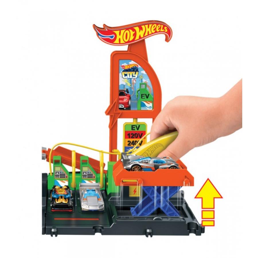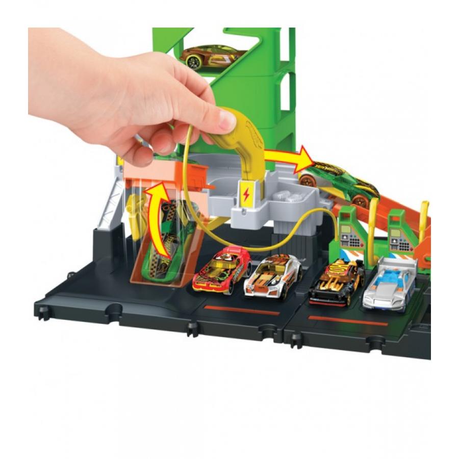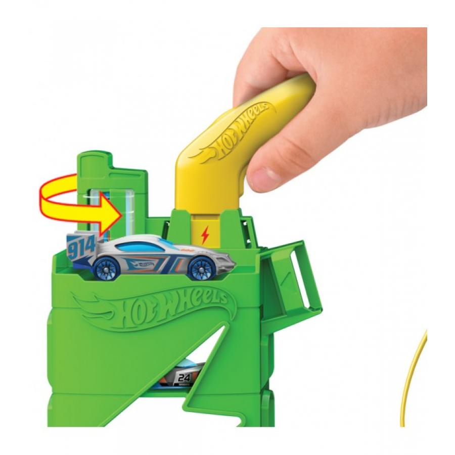 Kids can drive their cars to the Hot Wheels Charging Station and imagine many stories with all its functions.