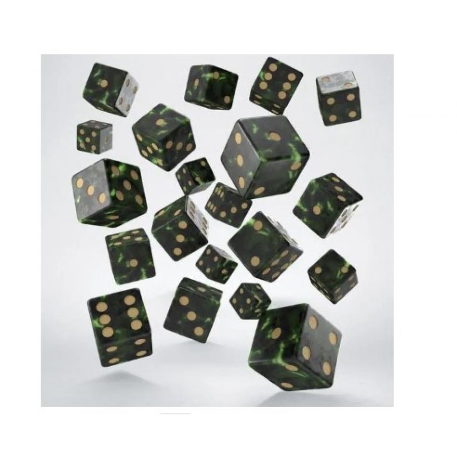 When your campaign demands more dice than you can count, this pack delivers. Each Full Pack holds 20 standard-sized D6 dice. Simple, readable pips and strong hue contrast make them easy to read in any lighting. It's a versatile, practical choice for everyone in need of plenty of reliable dice. Contents - Each pack includes 20 standard six-sided dice (D6) with classic pips. Vivid color - A shimmering purple color variant with gold engravings for strong contrast. Size - Dice are standard 16 mm cubes, ensuring compatibility with most gaming sets and accessories. Readability - Clean, traditional pip design ensures excellent legibility and fast recognition. Versatility - Designed for those who value functionality, consistency, and quantity, ready to handle any tabletop challenge.