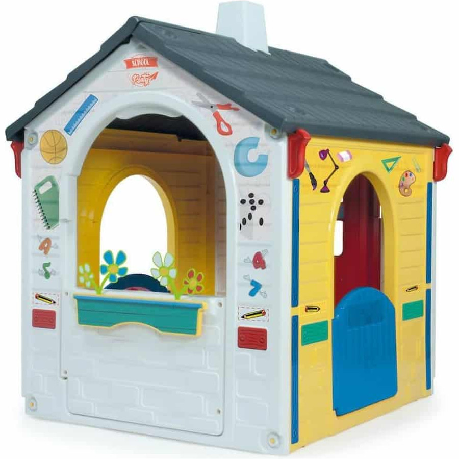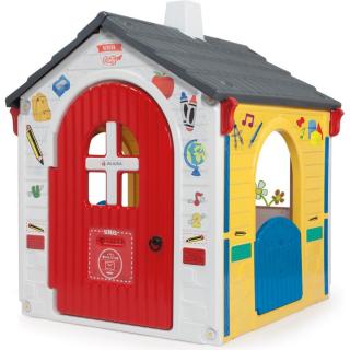 The School Party House is much more than a playhouse. It has a large front door with a locking latch and letterbox, two smaller doors on the sides and a rear window with a garden planter. But, above all, it stands out for its striking school-inspired decoration and bright colours.
