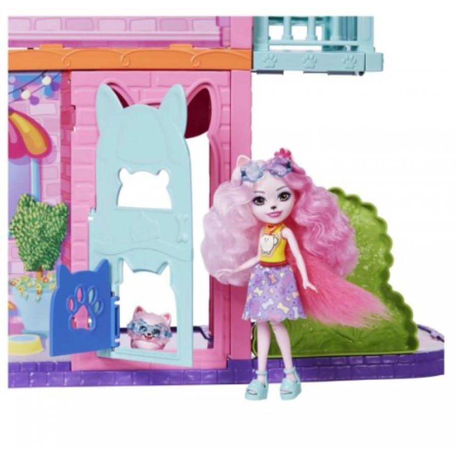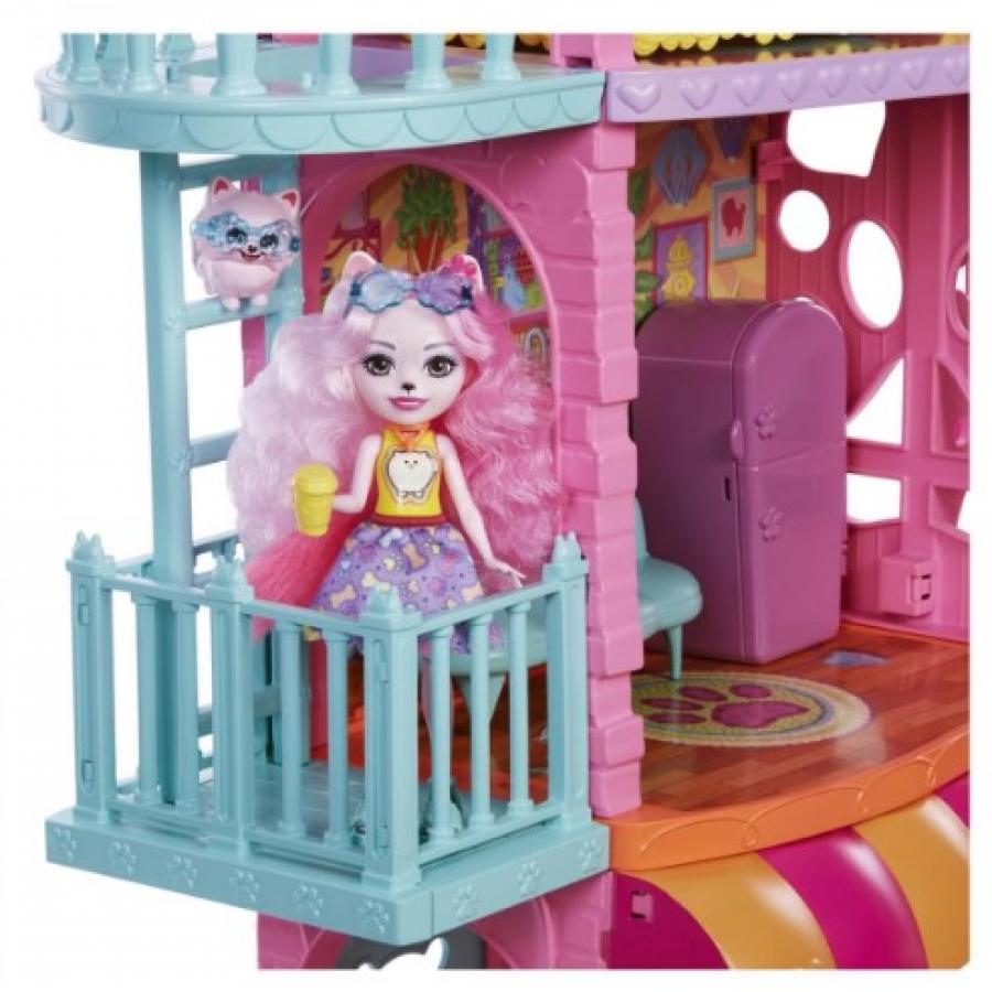 Live in the most impressive Enchantimals™ house ever! Standing 28” (71cm) tall, with 6 play areas and over 15 pieces, this playset inspires kids to create fun stories! Also includes a 6” (15cm) Palmer Pomeranian™ doll and her Pommy™ dog! With 3 levels and a downstairs café with outdoor seating, a living room, a kitchen, a bedroom, and a rooftop “pool.” The apartment’s exterior is incredibly cute and features a balcony, stairs and opening door (with another small door for the dog). With furniture and accessories, including a bed, sofa, opening fridge, refreshments, desserts and more, kids have everything they need to help the Enchantimals™ live their best life in the city!