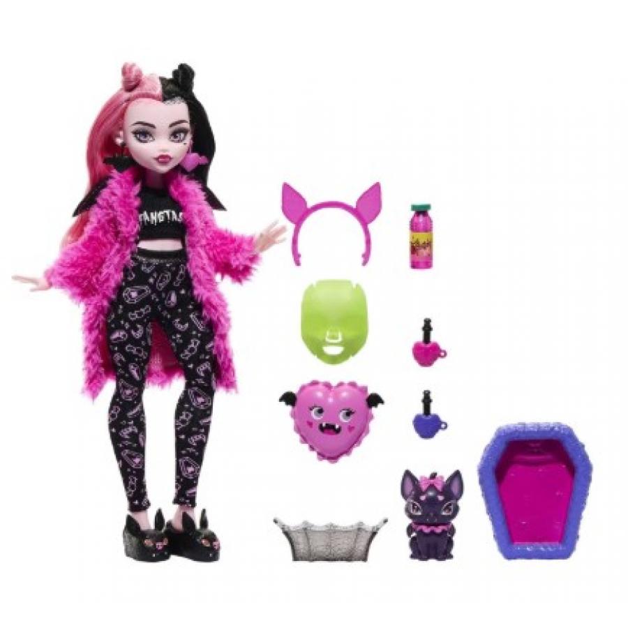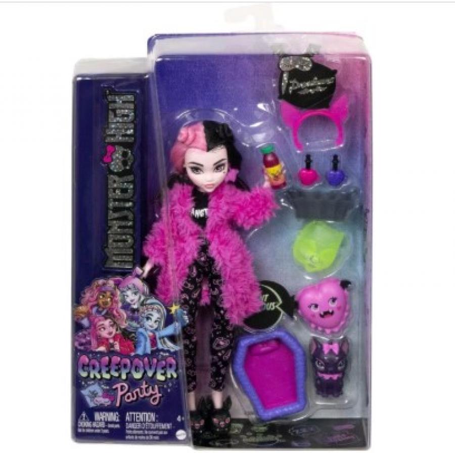 Of course, every pajama party involves grooming and makeovers... but throw in some spell books and nail polish and now you've got yourself a really fabulous night out with your girlfriends! Monster High presents the Creepover Party Series, a collection of adorable characters with themed accessories that inspire story-making with fantastic fashion games! Each Monster High doll wears a stylish outfit, has the necessary accessories for a pajama party and comes with an adorable animal. Each doll sold separately, subject to availability. Flexible body. The doll cannot stand up by itself. Colors and designs may vary.