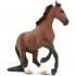 Size and Color:  Standing 12.7 cm tall and 12.7 cm long, this hand-painted Thoroughbred figure is about the size of a DVD or Blu-Ray disc. It features a Bay coat coloration (reddish brown with black nose, legs, mane, and tail. It features a white mark on its forehead, and white rear feet, with dark grey front hooves and peach colored rear hooves.