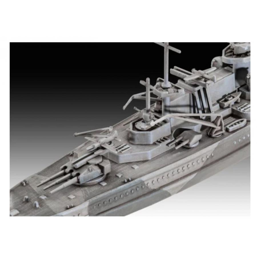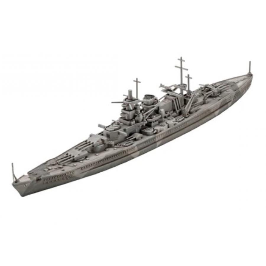 The 1:1200 scale "Battleship Gneisenau" model kit is a tribute to the historic German World War II battleship. With 48 pieces, this kit offers an optimal balance between challenge and building enjoyment. The model's finished length of 188 mm, width of 30 mm and height of 60 mm make the model an impressive display piece. Designed for model building enthusiasts aged 12 and up, this kit is classified as Level 4, making it ideal for advanced modellers who are experienced in gluing and painting models. The Gneisenau was a Kriegsmarine battleship that served during World War II. This model will not only bring you the joy of building a historic ship, but also a deep dive into the history of naval warfare. Gneisenau was a German battleship, also classified as a battleship, with the keel laid down in 1935 and launched in December 1936. The battleship entered rope service in the German Navy (German Kriegsmarine) in May 1938. The ship was 235 meters long, 30 meters wide and had a full displacement of 38,900 tons. Gneisenau's top speed was about 30–31 knots. The main armament was 9 280 mm guns in three triple turrets and the secondary armament included: 12 150 mm guns or 14 105 mm guns. Gneisenau was the second ship of the Scharnhorst class. She was ordered to replace the old battleship Hessen, which had become completely obsolete by the 1930s. Gneisenau undoubtedly towered above any British heavy cruiser, and at the same time was clearly inferior in gunnery power to the Royal Navy's battleships. This should not be surprising, since the ship was built primarily for cruiser service - so she was not intended to engage in open combat with British heavy ships, but rather to fight British merchant shipping, which was appropriate. Shortly after her launch, Gneisenau underwent a modernization consisting of increasing her seaworthiness, changing the funnel profile and making minor changes to the electrical installation. The battleship Gneisenau was christened in April 1940, when she supported the landing of German forces in Norway. Two months later, she played a decisive role in the sinking of the British aircraft carrier HMS Glorious. From December 1940 to March 1941 - together with her twin Scharnhorst - she carried out a cruise service in the Atlantic, during which she sank 8 merchant ships. In February 1942, together with Scharnhorst and the cruiser Prinz Eugen, she had to flee the British bombardment of Berest in Kiel, during which she was seriously damaged. Shortly afterwards, the damage was increased by a British bombing raid on Kiel. The battleship was then towed to Gdynia. In July 1942 - in the face of very heavy damage - the decision was made to withdraw the ship from service. The ship was sunk by the Germans in March 1945 at the exit from the port in Gdynia. By 1951, all the wreckage of the battleship had been dismantled or recovered from the sea.