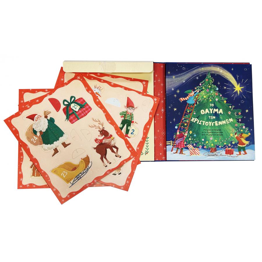 Όλη η μαγεία και το θαύμα των Χριστουγέννων σε ένα γιορτινό πακέτο! Το κουτί περιέχει ένα εικονογραφημένο βιβλίο με 24 χαρούμενες ιστορίες, που θα ενθουσιάσουν τα παιδιά. Ξεκινώντας από την 1η Δεκεμβρίου, και αφού διαβάσουν μία ιστορία τη μέρα, θα φτάσουν ως την Παραμονή των Χριστουγέννων μέσα από μια πρωτότυπη αφηγηματική αντίστροφη μέτρηση. Στο χωριό του Άγιου Βασίλη θα γνωρίσουν τα ξωτικά, τους πολύτιμους βοηθούς του, και μαζί τους θα επισκεφθούν το εργοστάσιο παιχνιδιών, το ζαχαροπλαστείο, το νηπιαγωγείο, ενώ θα ζήσουν και πολλές πολλές περιπέτειες! Το κουτί περιέχει επίσης 24 χριστουγεννιάτικες φιγούρες από σκληρό χαρτόνι, εμπνευσμένες από τις ιστορίες του βιβλίου, για ατέλειωτο παιχνίδι!