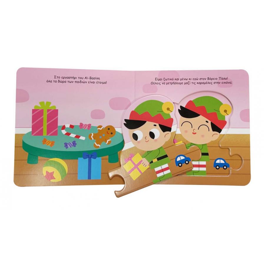 Το πρώτο παζλ των παιδιών με 5 μεγάλα κομμάτια, ιδανικά για μικρά χεράκια! Γνώρισε τους πρωταγωνιστές των Χριστουγέννων και ένωσε τα κομμάτια για να φτιάξεις ένα πολύχρωμο τρενάκι.