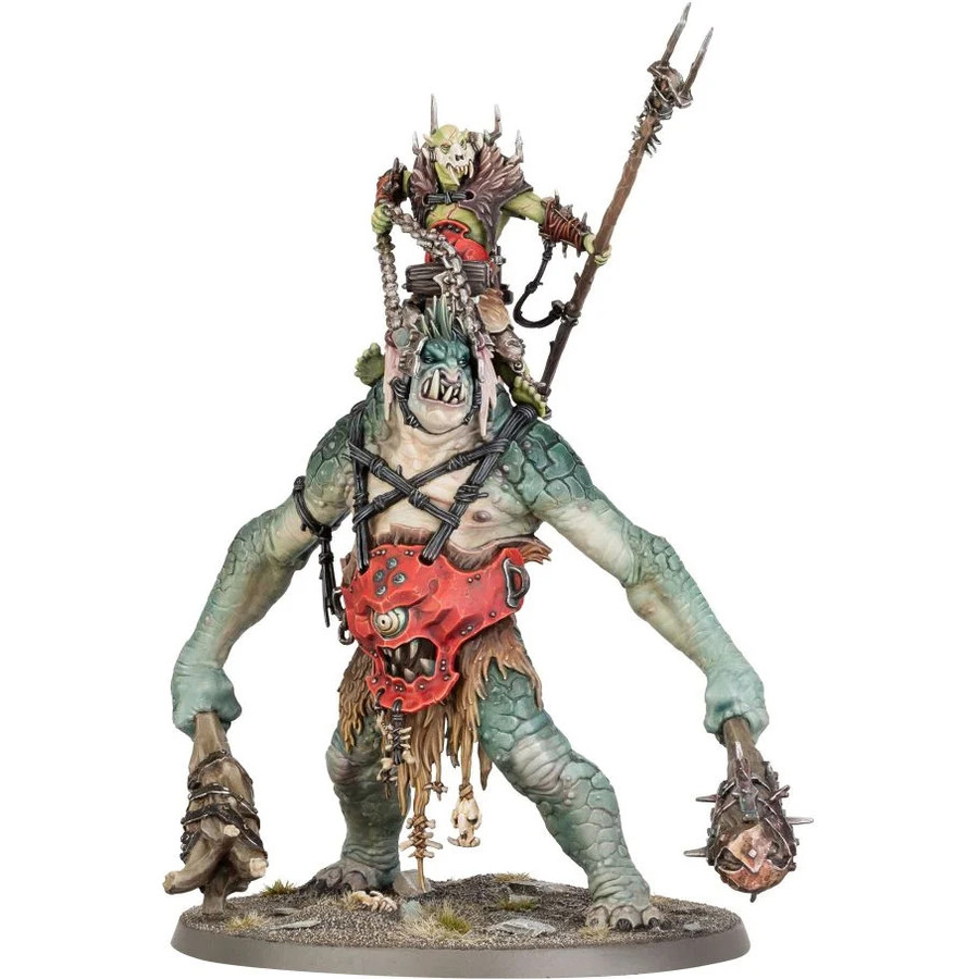 The most vicious Kruleboyz leaders often ride into battle riding a towering Mirebrute Troggoth that they have brought to heel. These lumbering beasts stride into battle using crude clubs and all manner of natural detritus to batter their enemies. Should they not perform adequately, the Breaka-boss will give them a good stab with his bident-goad to whip them into a frenzy.