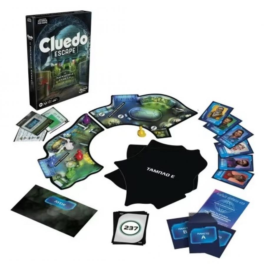 Cluedo Escape The World Fair. Ώρες πριν από την έναρξη της Παγκόσμιας Έκθεσης, ο πρωτοπόρος εφευρέτης σκοτώνεται. Πρέπει να εντοπίσετε τον ένοχο και να σώσετε την έκθεση από την καταστροφή! Αποκρυπτογράφησε τα στοιχεία, λύστε γρίφους για να ξεκλειδώσετε νέες περιοχές της Έκθεσης και για να αποκαλύψετε λεπτομέρειες. Ο δυναμικός πίνακας χτίζεται και αλλάζει καθ' όλη τη διάρκεια του παιχνιδιού! Περιλαμβάνει 6 πλαστικά πιόνια, 7 σκακιέρες, 113 κάρτες, 3 μυστικούς φακέλους, φύλλο λύσης, φυλλάδιο και οδηγίες.