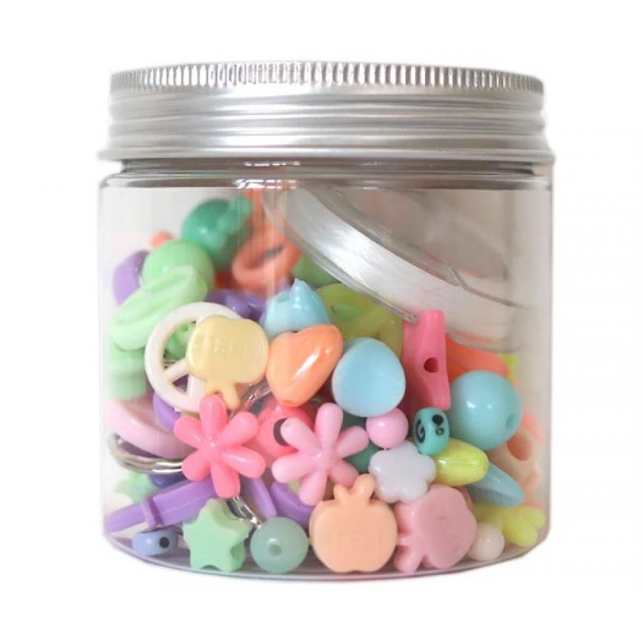Μέσα σε αυτό το βάζο θα βρείτε όμορφα κοσμήματα καθώς και διάφορα αξεσουάρ. Το καρούλι από ελαστικό νήμα θα σας επιτρέψει να φτιάξετε πολλά βραχιόλια ή κολιέ, για να κρατήσετε ή να προσφέρετε. Θα βρείτε επίσης μέσα ό,τι χρειάζεστε για να φτιάξετε κοσμήματα γυαλιών, κοσμήματα κινητών αλλά και μπρελόκ. Στρογγυλές χάντρες, φανταχτερές χάντρες ή χάντρες με γράμματα,... Αυτό το μείγμα παστέλ σίγουρα θα σας εκπλήξει!