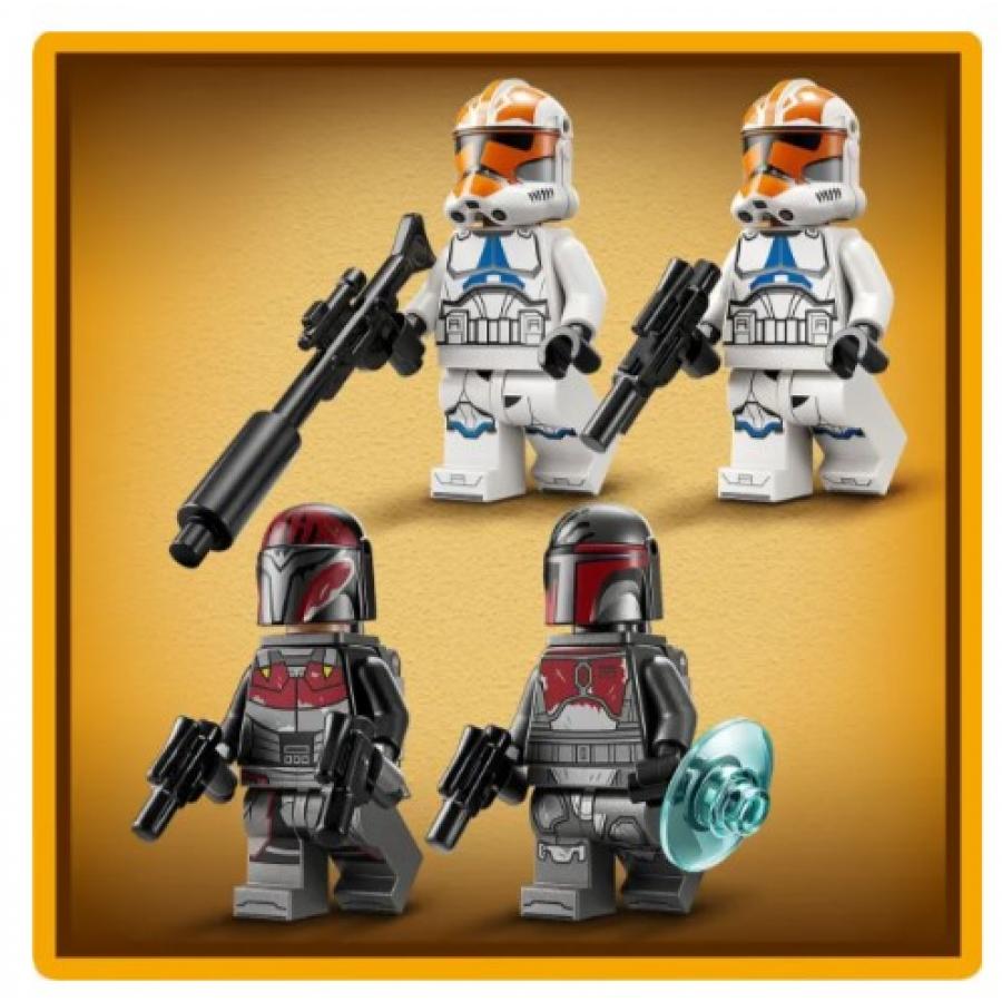 LEGO Star Wars Siege Of Mandalore Battle Pack. Αυτό το σετ κατασκευής παιχνιδιού διαθέτει 4 LEGO® Star Wars™ μίνι φιγούρες, ένα ταχυσκάφος, οδόφραγμα και πολλά αξεσουάρ για παιχνίδι γεμάτο δράση. Ενεργοποιήστε το μπλάστερ του ταχυσκάφους που εκτοξεύει καρφιά και ανταποδώστε τα πυρά με τον εκτοξευτή καρφιών που είναι τοποθετημένος στο οδόφραγμα. Βάλτε τα τζετ-πακ στους Κομάντο για εναέριες επιθέσεις με τα πιστόλια μπλάστερ τους. Αυτό το παιχνίδι κατασκευής δίνει έμπνευση στη φαντασία των παιδιών και είναι φανταστικό δωράκι για αγόρια, κορίτσια και κάθε φαν του Star Wars ηλικίας 6 ετών και άνω. Αναζητήστε και άλλα σετ πακέτων μάχης (πωλούνται χωριστά) στη σειρά για να ενισχύσετε ακόμα περισσότερο τις δυνατότητες παιχνιδιού. Τα παιδιά μπορούν να κατασκευάζουν με αυτοπεποίθηση χρησιμοποιώντας την εφαρμογή LEGO® Builder – ζουμάρουν και περιστρέφουν σε 3D και παρακολουθούν την πρόοδο με απλές ψηφιακές οδηγίες. Το σετ περιέχει 116 τεμάχια.