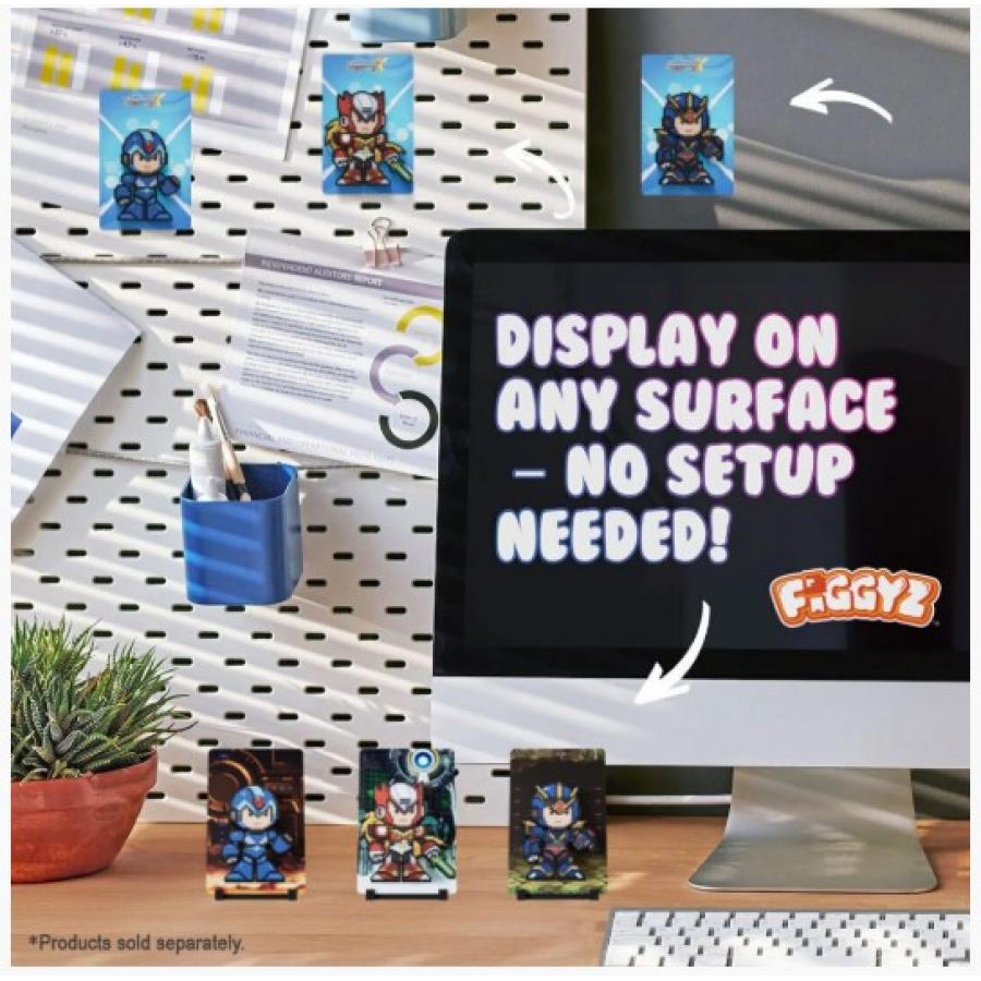 Τα FiGGYZ είναι επίπεδες, μαγνητικές φιγούρες pixel με μεταλλικό πίσω πάνελ που μπορεί να χρησιμοποιηθεί και στις δύο πλευρές, ώστε να μπορείτε να επιλέξετε ανάμεσα σε δύο διαφορετικά φόντα. Με ύψος 11 cm, τα FiGGYZ είναι ιδανικά για προβολή σε ράφια, γραφεία ή τοίχους χωρίς να καταλαμβάνουν πολύ χώρο. Κάθε συλλεκτικό περιέχει επίσης έναν κωδικό QR που συνδέεται με την εφαρμογή FiGGYZ, η οποία σας επιτρέπει να παρακολουθείτε τη συλλογή σας ανά πάσα στιγμή και προσφέρει άλλες εκπλήξεις.