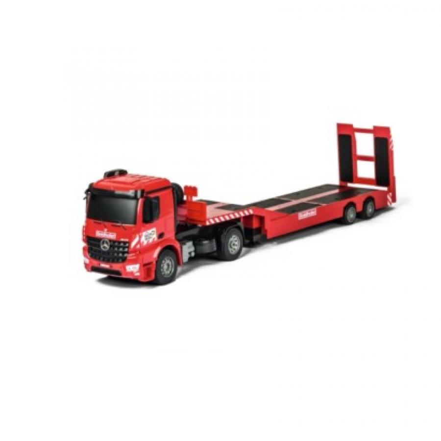 Το CARSON Mercedes-Benz Arocs με χαμηλό φορτωτή σε στυλ Goldhofer δίνει στο μηχανήμα κατασκευών CARSON σας νέα κινητικότητα και διαθέτει πολλές χρήσιμες λειτουργίες. Όπως όλα τα οχήματα κατασκευών της σειράς CARSON RC, η μονάδα τράκτορα διαθέτει επίσης τα ΚΟΡΥΦΑΙΑ χαρακτηριστικά, φυσικά, όπως ένα εναλλασσόμενο φως με λειτουργία αναλαμπής, ήχο κινητήρα και κόρνα. Ένα ιδιαίτερο χαρακτηριστικό είναι η πλάκα πέμπτου τροχού που μπορεί να ελεγχθεί χρησιμοποιώντας τον πομπό 2,4 GHz χωρίς παρεμβολές, καθιστώντας δυνατή τη σύνδεση και αποσύνδεση του χαμηλού φορτωτή. Το ρυμουλκούμενο διαθέτει επίσης τη δική του μπαταρία και επομένως μπορεί να λειτουργήσει χωρίς τη μονάδα τράκτορα χρησιμοποιώντας το τηλεχειριστήριο, πράγμα που σημαίνει ότι μπορείτε να μετακινήσετε τη βάση πέμπτου τροχού πάνω και κάτω και να ελέγξετε την ράμπα πρόσβασης. Το εγκατεστημένο φως οπισθοπορείας λειτουργεί αυτόματα σε αλληλεπίδραση με τη μονάδα τράκτορα και δεν χρειάζεται να ελέγχεται ξεχωριστά. Ο φορτιστής USB με δύο συνδέσεις φόρτισης, οι δύο μπαταρίες κίνησης και οι μπαταρίες πομπού ολοκληρώνουν το εύρος παράδοσης και καθιστούν το χαμηλό φορτωτή σας έτοιμο για χρήση μετά τη φόρτωση των μπαταριών κίνησης. Ελπίζουμε να διασκεδάσετε πολύ με το νέο σας Mercedes-Benz Arocs με χαμηλό φορτωτή Goldhofer από την CARSON RC-Sport.