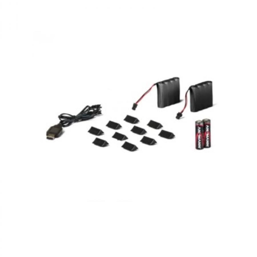 Πλήρως συναρμολογημένο μοντέλο, σύστημα τηλεχειρισμού 2,4 GHz, 2 τροφοδοτικά NiMH, φορτιστής USB, 2 μπαταρίες πομπού και εγχειρίδιο.