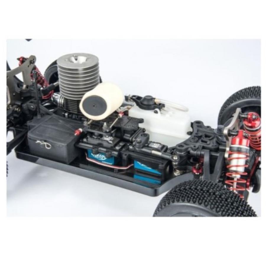 Το CARSON Virus 4.0 V32 είναι ένα καινοτόμο 4x4 buggy με αγωνιστικό πλαίσιο βελτιστοποιημένο για πίστες εκτός δρόμου. Ο κύριος διακόπτης, ο δέκτης και οι μπαταρίες βρίσκονται σε ένα εύκολα ανοιχτό κουτί για προστασία από ψεκασμό νερού και σκόνη, ώστε να μπορείτε να απολαμβάνετε την οδήγηση ακόμη και σε βροχερό καιρό. Για την προστασία του τιμονιού και των σερβομηχανισμών γκαζιού/φρένου από την υγρασία, το περίβλημα σφραγίστηκε. Το πλαίσιο αλουμινίου 3 mm είναι εξαιρετικά στενό και διαθέτει εγκάρσια δοκό πλαισίου μπροστά και πίσω. Οι τεράστιοι βραχίονες ελέγχου και τα πλευρικά προστατευτικά προσφέρουν ώρες διασκεδαστικής οδήγησης. Ο κινητήρας Force 5,3 cc παρέχει ομοιόμορφη ισχύ στην τετρακίνηση και επιταχύνει το V32 στα 90 km/h. Τα αμορτισέρ πίεσης λαδιού αλουμινίου Big Bore και οι πολυάριθμες επιλογές ρύθμισης παρέχουν τέλειο κράτημα στην πίστα και επιτρέπουν στο CARSON Virus 4.0 V32 να πετάει σε οποιαδήποτε διαδρομή. Απαραίτητα αξεσουάρ: Αρ. 500905191 Nitro Fuel 16 % Αρ. 500905082 Nitro-Set Αρ. 500609042 Mignon-Set NiMH 2300 mAh Αρ. 500608104 Μπαταρία δέκτη 6V 1600 mAh Αρ. 500606053 Φορτιστής Expert xBase 2.0 se.