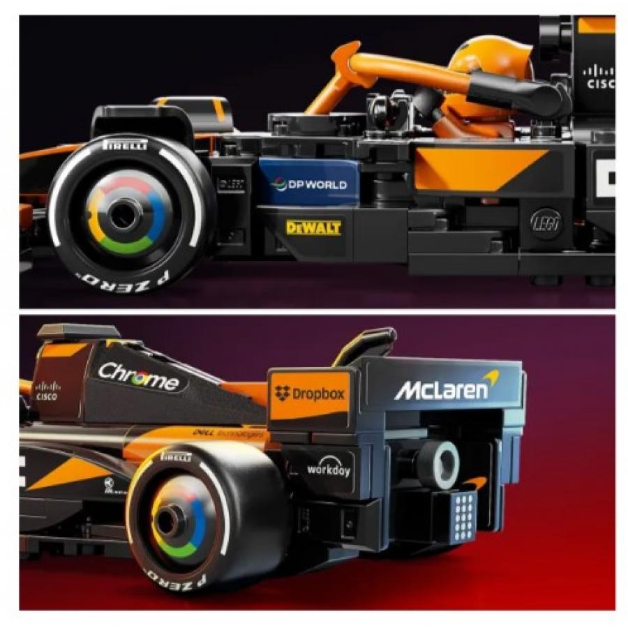 Ζήστε όλο τον ενθουσιασμό των αγώνων της Formula 1® με αυτό το σετ οχήματος LEGO® Speed Champions McLaren F1 Team MCL38 Race Car (77251) για αγόρια και κορίτσια ηλικίας 10 ετών και άνω. Παιδιά και ενήλικες συλλέκτες αυτοκινήτων κατασκευάζουν, επιδεικνύουν και αναπαριστούν αγώνες με ένα μοντέλο αγωνιστικού αυτοκινήτου F1 που διαθέτει σχεδιαστικές λεπτομέρειες από το αληθινό αυτοκίνητο που συμμετείχε στη σεζόν 2024 της Formula 1. Το μοντέλο αυτοκινήτου F1 διαθέτει κόκπιτ που ανοίγει σηκώνοντας τη μπάρα ασφαλείας, πίσω αεροτομή, ανάρτηση wishbone, αυτοκόλλητα χορηγού και φαρδιά πίσω ελαστικά με τη λέξη “Pirelli.” Το όχημα συνοδεύεται επίσης από μίνι φιγούρα οδηγού που φορά στολή McLaren και κράνος και τοποθετείται μέσα στο κόκπιτ για αγωνιστική δράση. Τα σετ LEGO Speed Champions δίνουν την ευκαιρία σε παιδιά και λάτρεις των αγώνων να κατασκευάσουν τα μοντέλα μερικών από τα πιο εμβληματικά οχήματα του κόσμου, που περιλαμβάνουν και άλλα αυτοκίνητα F1 (πωλούνται χωριστά) από τη σεζόν 2024 του πρωταθλήματος. Κάθε σετ αυτοκινήτου μπορεί να δημιουργηθεί χρησιμοποιώντας τις έντυπες οδηγίες κατασκευής ή την εφαρμογή LEGO Builder, που καθοδηγεί εσάς και το παιδί σας σε μια απολαυστική περιπέτεια κατασκευής.