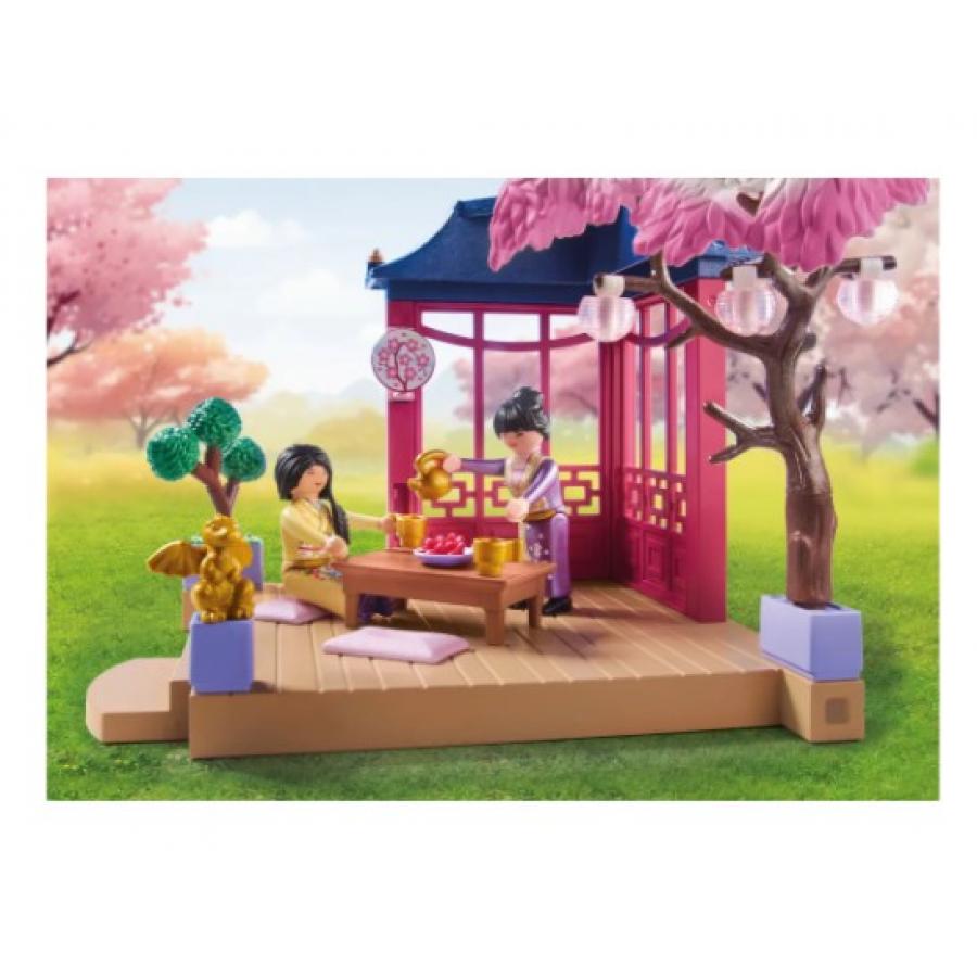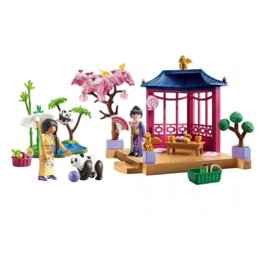 Κάντε ένα βήμα στην ήρεμη ομορφιά του Ασιατικού Κήπου, ένα τέλειο καταφύγιο γαλήνης. Το κομψό περίπτερο είναι στολισμένο με περίτεχνους δράκους και υπέρλαμπρους πολυελαίους και περιβάλλεται από τη λίμνη, τα ζωηρά άνθη κερασιάς και τα καταπράσινα φυτά μπαμπού. Με εργαλεία κηπουρικής και ανθισμένα φυτά, οι μικροί κηπουροί μπορούν να βοηθήσουν στη φροντίδα του τοπίου, ενώ το μπονσάι και τα διακοσμητικά κουτιά λουλουδιών προσθέτουν μια επιπλέον πινελιά. Από το σερβίρισμα γλυκών με τα chopsticks μέχρι το τάισμα των πάντα, αυτό το σετ PLAYMOBIL προσφέρει αμέτρητες ευκαιρίες για φανταστικό παιχνίδι.