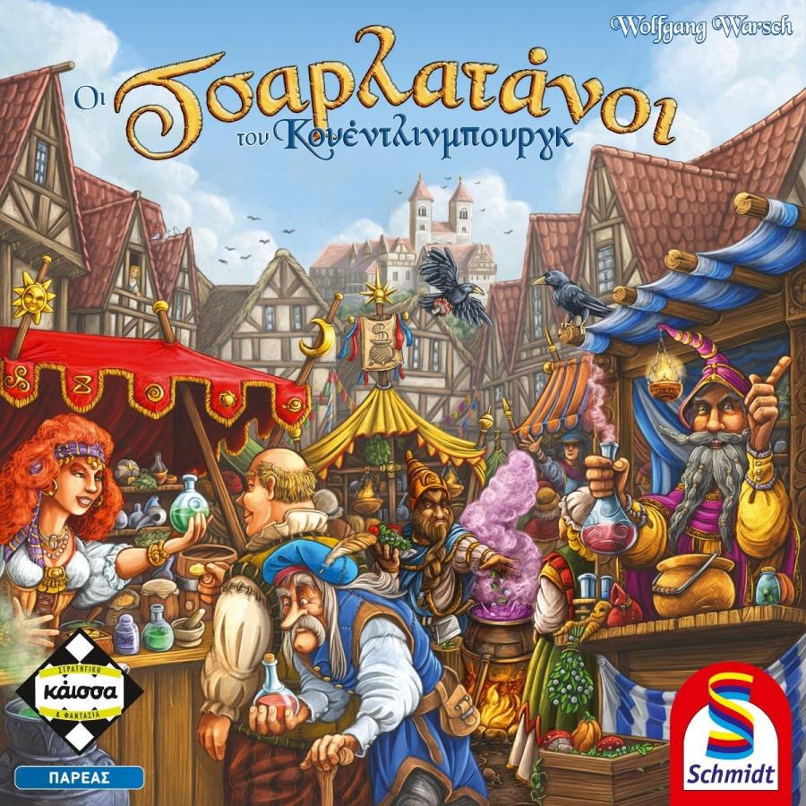 Οι Τσαρλατάνοι του Κουέντλινμπουργκ είναι ένα παιχνίδι στρατηγικής αλλά και ρίσκου, όπου τραβάτε συστατικά από το σακούλι σας μέχρι να αποφασίσετε ότι το φίλτρο σας είναι έτοιμο. Όμως προσέξτε: αν βάλετε λίγα παραπάνω συστατικά από όσα πρέπει, το τσουκάλι σας μπορεί να εκραγεί!