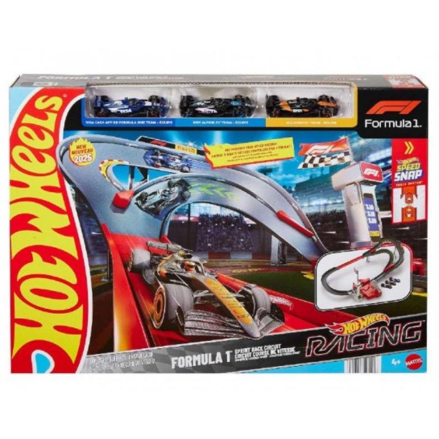 Μιμηθείτε τον συναρπαστικό ενθουσιασμό ενός αγώνα Formula 1 με το σετ πίστας Hot Wheels Racing Formula 1 Sprint Race Circuit Track. Περιλαμβάνει τρία αυτοκίνητα Formula 1 από χυτό χάλυβα σε κλίμακα 1:64 με διακοσμητικά που ταιριάζουν με αγαπημένες ομάδες των οπαδών, όπως η McLaren Formula 1 Team, η BWT Alpine F1 Team και η Visa Cash App RB Formula One Team, και δύο τρόπους παιχνιδιού. Για τη λειτουργία αγώνα, φορτώστε τα οχήματα στον εκτοξευτή στροφών και πιέστε τον μοχλό για να τα στείλετε με μεγάλη ταχύτητα στην πίστα. Θα υπάρξει μια εκπληκτική αλλαγή προβαδίσματος καθώς τα αυτοκίνητα εκτρέπονται στη λωρίδα προσπέρασης; Σε λειτουργία άπειρου, πατήστε τον μοχλό αντλίας για να συνεχίσουν τα αυτοκίνητα να τρέχουν γύρω από το σετ παρακάμπτοντας τους εκτροπείς. Τα κομμάτια της πίστας είναι συμβατά με το Speed Snap Track για εκτεταμένους αγώνες και stunting. Πρόσθετες πίστες και σετ πωλούνται ξεχωριστά. Οι ομάδες, τα χρώματα και οι διακοσμήσεις ενδέχεται να διαφέρουν.