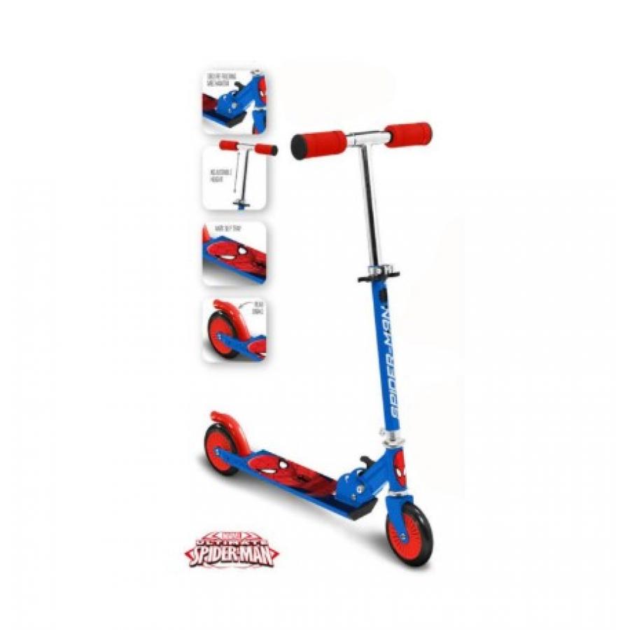 Πτυσσόμενο σκούτερ Spiderman, ελαφρύ και ρυθμιζόμενο για μικρούς ήρωες εν κινήσει! Ασφαλές σύστημα αναδίπλωσης για εύκολη μεταφορά. Ρουλεμάν ABEC 5 και πίσω ποδόφρενο. Ρυθμιζόμενο ύψος για να ταιριάζει στο μέγεθος του παιδιού. Αντιολισθητικό πλαίσιο αλουμινίου. Λαβές από αφρώδες υλικό για βέλτιστη άνεση.