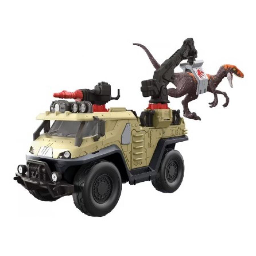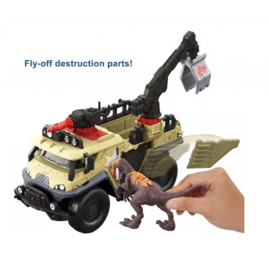 Ετοιμαστείτε για συγκινήσεις και περιπέτεια με το Capture ‘N Crush Truck™, εμπνευσμένο από το Jurassic World: Dominion. Αυτό το όχημα Capture ‘N Crush Truck™ έχει μήκος περίπου 12 και είναι σχεδιασμένο για να αιχμαλωτίζει δεινόσαυρους στο χαλαρό! Το όχημα διαθέτει βέλος εκτόξευσης και ηρεμιστικό, περιστρεφόμενο γερανό για ανύψωση δεινοσαύρων και επίπεδο κρεβάτι για μεταφορά. Ελαστικές αλυσίδες στην πλάτη ασφαλίζουν το ζώο που αιχμαλωτίζεται. Αλλά οι Δεινόσαυροι μπορούν να αντεπιτεθούν και υπάρχει συντριπτική δράση με αποσπασμένα μέρη, συμπεριλαμβανομένου του πλαϊνού τμήματος και της μπροστινής καμπίνας! ! Το πακέτο συνοδεύεται από μια φιγούρα velociraptor για να ξεκινήσει το παιχνίδι αμέσως. Δώστε ζωή στο velociraptor με εκτεταμένο ψηφιακό παιχνίδι χρησιμοποιώντας την Επαυξημένη Πραγματικότητα.