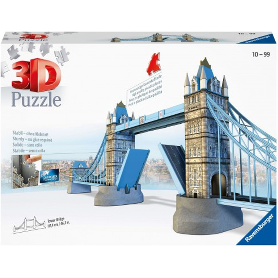 Έλα μαζί μας σε μια... Maxi περιπέτεια τρίτης διάστασης! Με τα 3D Puzzle της Ravensburger τα διασημότερα μνημεία είναι στα... χέρια σου! Με πλαστικά κλικαριστά κομμάτια που ενώνονται τέλεια μεταξύ τους για να σχηματίσουν ένα σταθερό κτίριο. Η τεχνολογία Easyclick εγγυάται την απόλαυση στο puzzle από την αρχή ως το τέλος! Δεν απαιτείται η χρήση κόλλας. Απόκτησε και εσύ τη δική σου μοναδική Γέφυρα του Πύργου - Λονδίνο!