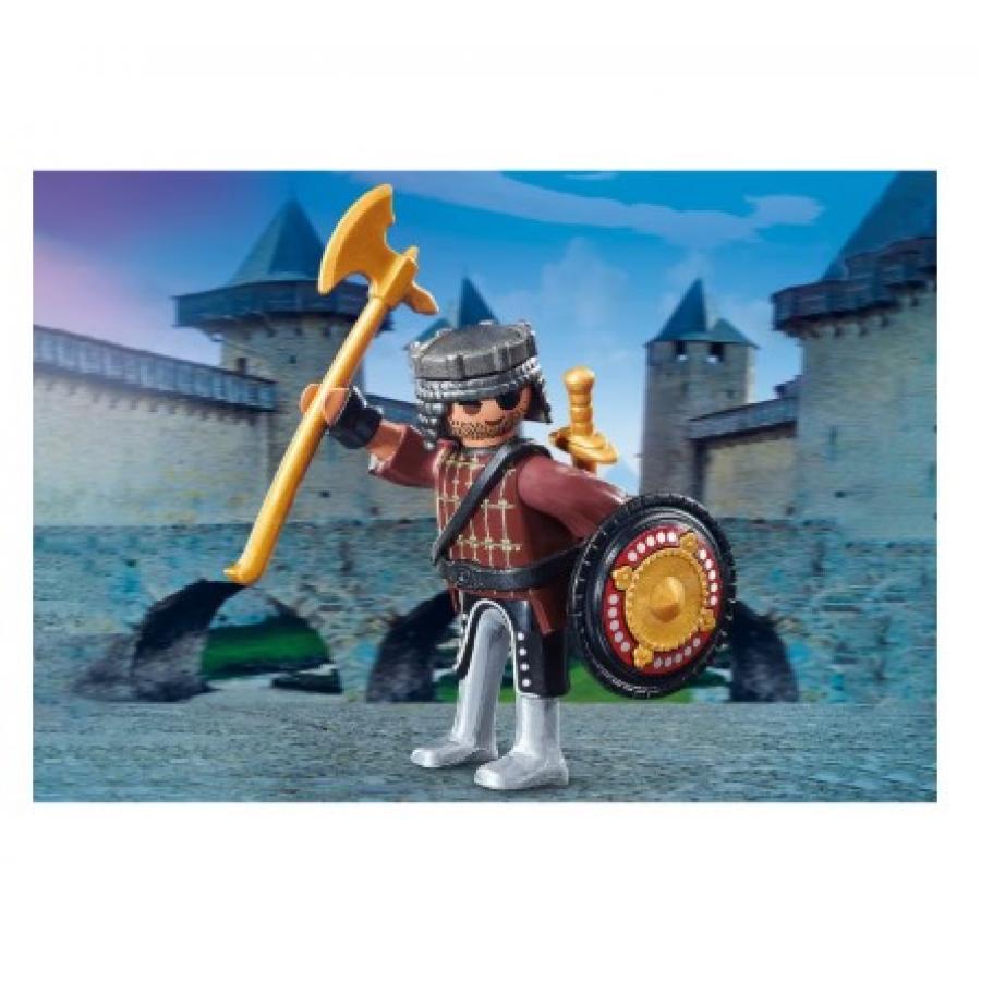 Με ασπίδα, σπαθί και τσεκούρι.Αυτός ο ιππότης είναι ένας γενναίος πολεμιστής. Εξοπλισμένος με τσεκούρι, σπαθί και ασπίδα, αντιμετωπίζει με επιτυχία κάθε μάχη.