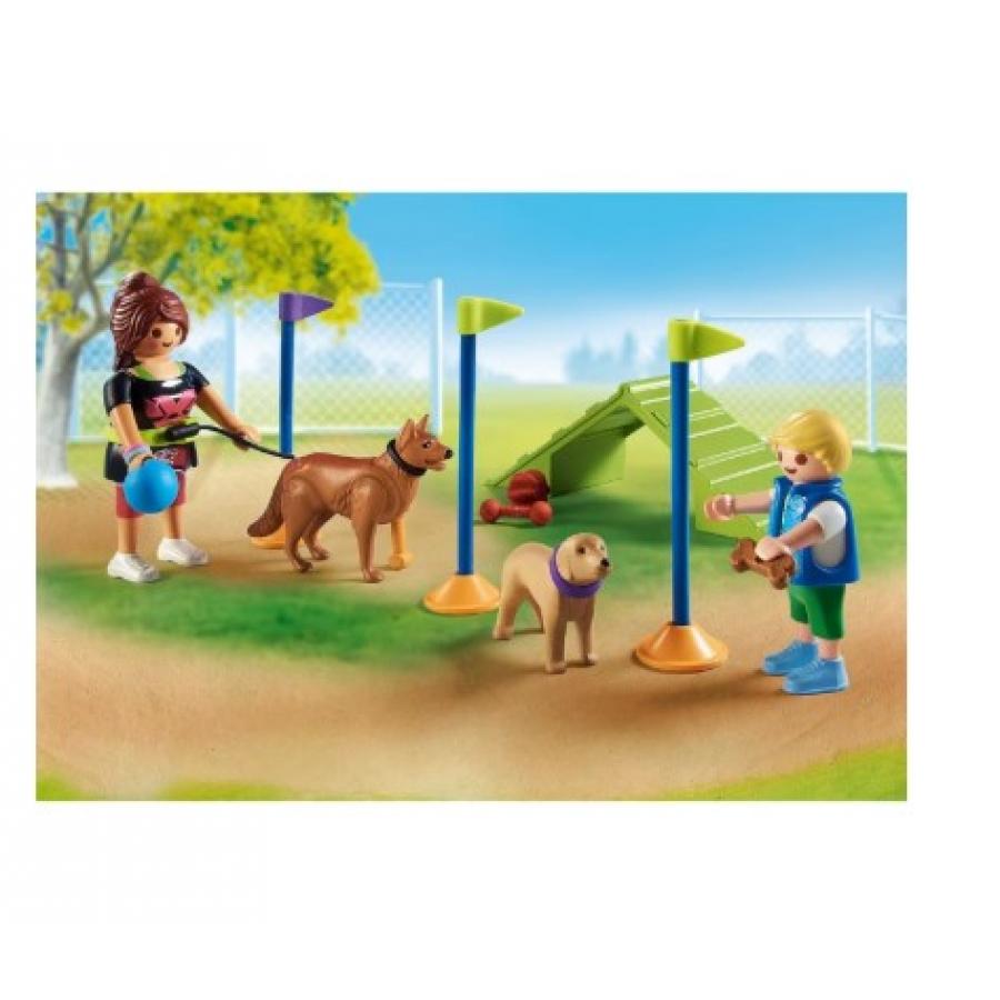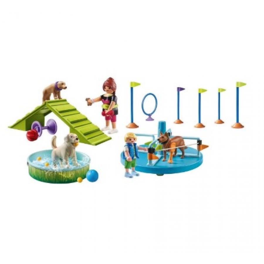 Η διασκέδαση δεν τελειώνει ποτέ στο PLAYMOBIL Πάρκο σκύλων! Γυρίστε το καρουσέλ, τρέξτε το σλάλομ ή βουτήξτε στην πισίνα με μπάλες για ατελείωτη διασκέδαση. Προσαρμόστε τη διαδρομή με τις μπάρες από σιλικόνη, ρίξτε παιχνίδια ή τοποθετήστε την ράμπα για περιπέτειες γεμάτες ενέργεια. Το λουρί συνδέεται στη ζώνη της φιγούρας.