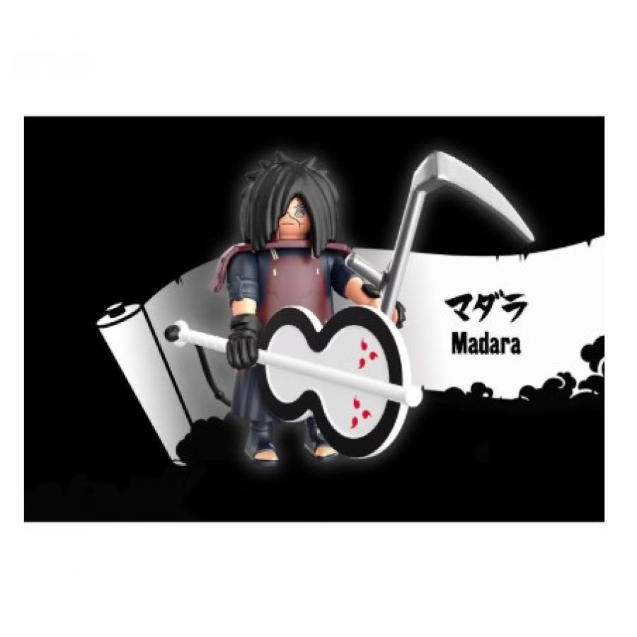 Το σετ PLAYMOBIL περιλαμβάνει τον χαρακτήρα του «Naruto Shippuden», Madara με μαύρα μαλλιά μέχρι τον ώμο, που καλύπτουν το δεξί του μάτι. Κρατάει ένα δρεπάνι και μία βεντάλια gunbai.