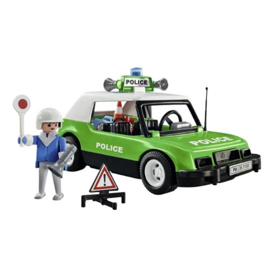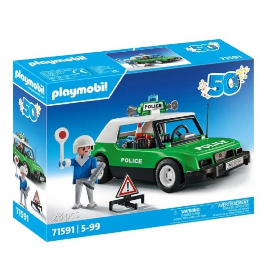 Playmobil Vintage Περιπολικό. Το εμβλητικό αστυνομικό όχημα του 1977 επανακυκλοφορεί σε μία συλλεκτική έκδοση, με μία από τις πρώτες φιγούρες PLAYMOBIL. Περιλαμβάνει κράνος, προειδοποιητικά σήματα και πολλά ρετρό αξεσουάρ. Τα PLAYMOBIL γίνονται 50 χρονών και όλα τα παιδιά του κόσμου γιορτάζουν μαζί τους! Με αυτό το επετειακό σετ παιχνιδιού, βασισμένο στο θρυλικό αστυνομικό όχημα του 1977, ένα ταξίδι γεμάτο δράση και περιπέτεια ξεκινά. Το περιπολικό διαθέτει χώρο για τέσσερις φιγούρες και η οροφή του αφαιρείται για περισσότερη διασκέδαση. Το συλλεκτικό σετ παιχνιδιού περιλαμβάνει αυτοκόλλητα στα γερμανικά, τα αγγλικά και τα ισπανικά για να διακοσμήσετε το αυτοκίνητο.