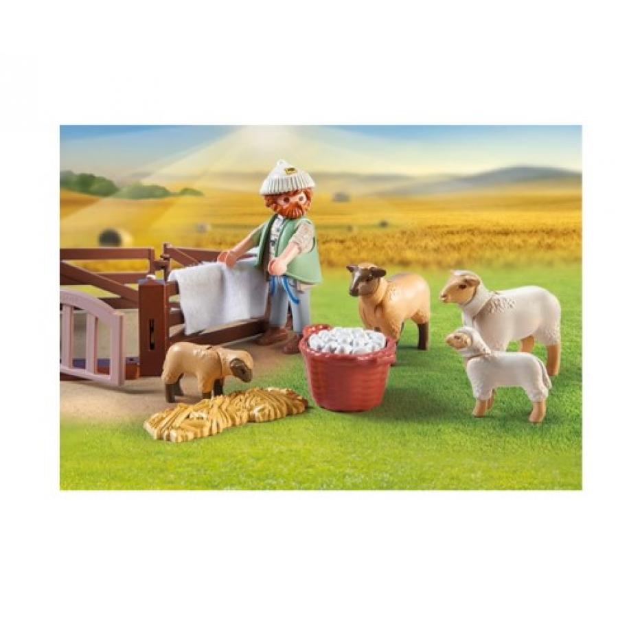Ο νεαρός βοσκός φροντίζει με αγάπη τα πρόβατά του. Σήμερα, μαζί με τον αγαπημένο του σκύλο θα τα επισκεφθούν και θα τα κουρέψει. Ανακαλύψτε το νέο σετ PLAYMOBIL Βοσκός με προβατάκια. Περιλαμβάνει έναν νεαρό βοσκό, έναν ποιμενικό σκύλο (Border Collie), δύο προβατάκια και δύο αρνιά, ένα καλάθι με μαλλί και έναν φράχτη. Οδηγήστε τα πρόβατα στη μάντρα και κουρέψτε το μαλλί τους. Το σετ είναι κατασκευασμένο από 80% βιώσιμα υλικά κατά μέσο όρο.