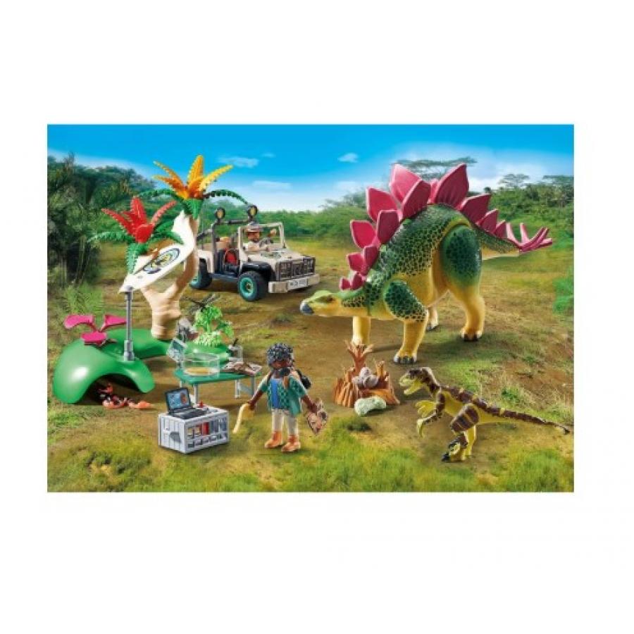 Ετοιμαστείτε για συναρπαστικές περιπέτειες με τους δεινοσαύρους με το PLAYMOBIL Ερευνητικό Κέντρο με δεινοσαύρους.Οι ερευνητές των δεινοσαύρων βυθίζονται στη ζούγκλα για να αποκαλύψουν τα μυστήρια των προϊστορικών γιγάντων. Στο κέντρο τους πραγματοποιούν μετρήσεις, εξετάζουν αυγά στο μικροσκόπιο και συλλέγουν δεδομένα.Ενώ εξερευνούν με το off-road όχημά τους, συναντούν έναν Στεγόσαυρο και έναν Δεινόνυχο. Τι τύχη!
