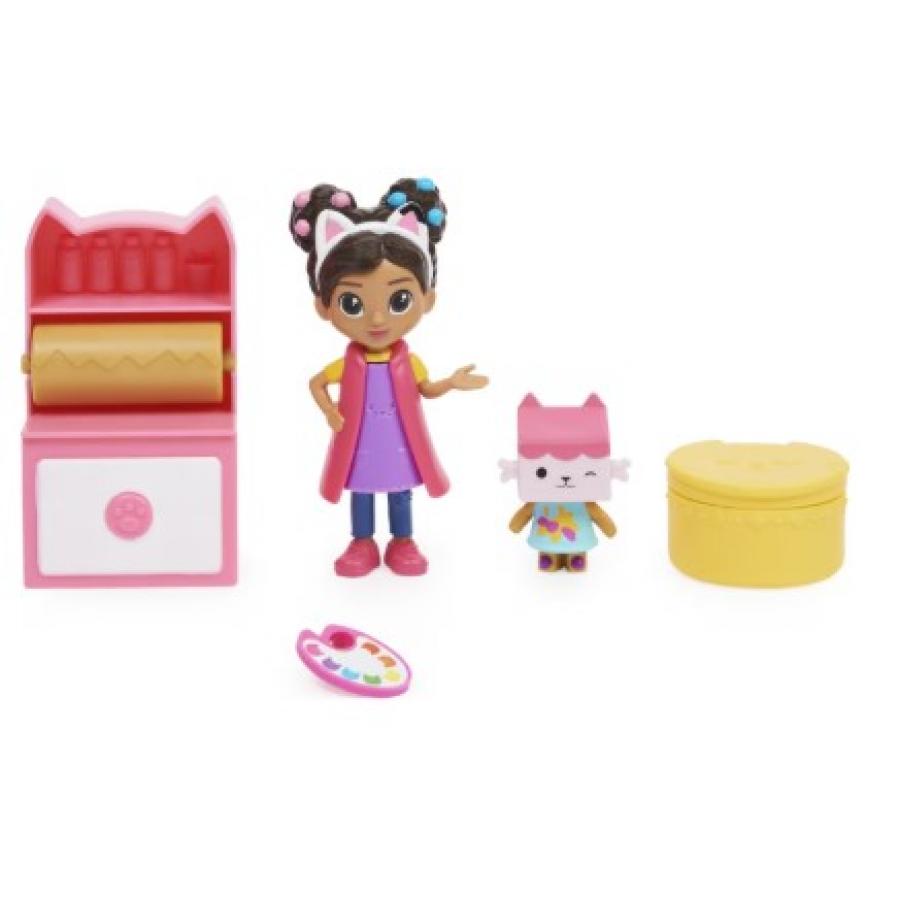 Ετοιμαστείτε να ζωγραφίσετε ένα αριστούργημα με το Σετ Εργαστηρίου Τέχνης Κουκλόσπιτου της Gabby! Αυτό το συναρπαστικό σετ παιχνιδιών περιλαμβάνει μια συλλεκτική φιγούρα Gabby Girl 9,7 εκ., μια φιγούρα Baby Box Cat, ένα έπιπλο γραφείου τέχνης και ένα αξεσουάρ παλέτας χρωμάτων, καθώς και ένα κουτί Παράδοσης Κουκλόσπιτου με ένα αξεσουάρ έκπληξη μέσα. Όπως και στην παράσταση, ξεπακετάρετε την ειδική Παράδοση Κουκλόσπιτου σας για να αποκαλύψετε το μυστηριώδες αξεσουάρ του σετ. Τι θα ανακαλύψετε μέσα; Αφήστε τη φαντασία σας ελεύθερη και παίξτε τις δικές σας περιπέτειες με την Gabby και την Baby Box Cat.
