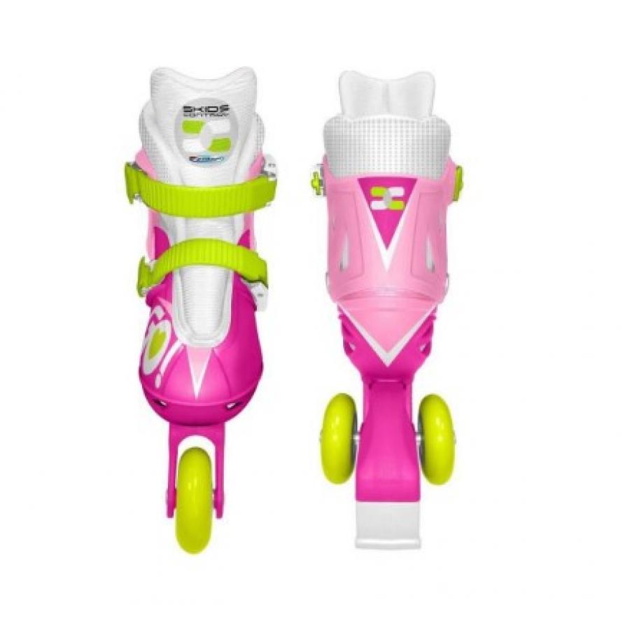 Προοδευτικά πατίνια 2 σε 1: Tri-Skate και Roller in Line. Ρυθμιζόμενο μέγεθος 27-30. Εύκολη και γρήγορη ρύθμιση με το πάτημα ενός κουμπιού. Ρυθμιζόμενη επένδυση με κλείσιμο Velcro. Ρουλεμάν 608Z. Αγκράφα με ασφαλές κλείσιμο. Τροχοί PVC 60*24mm.