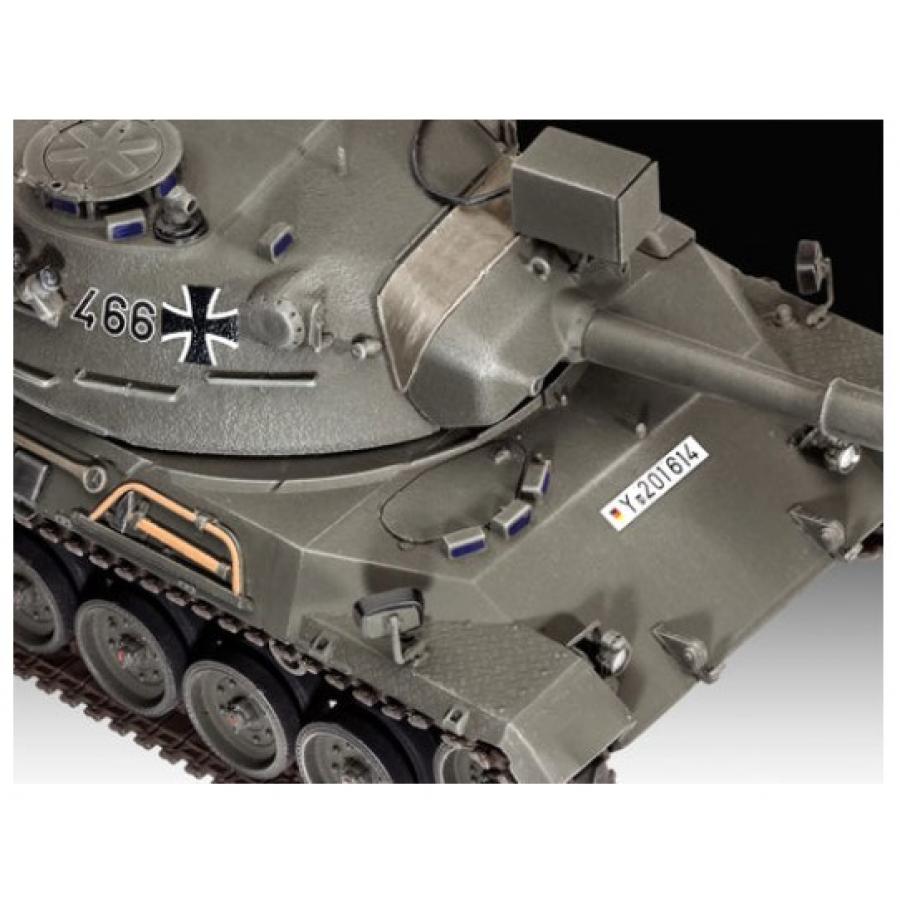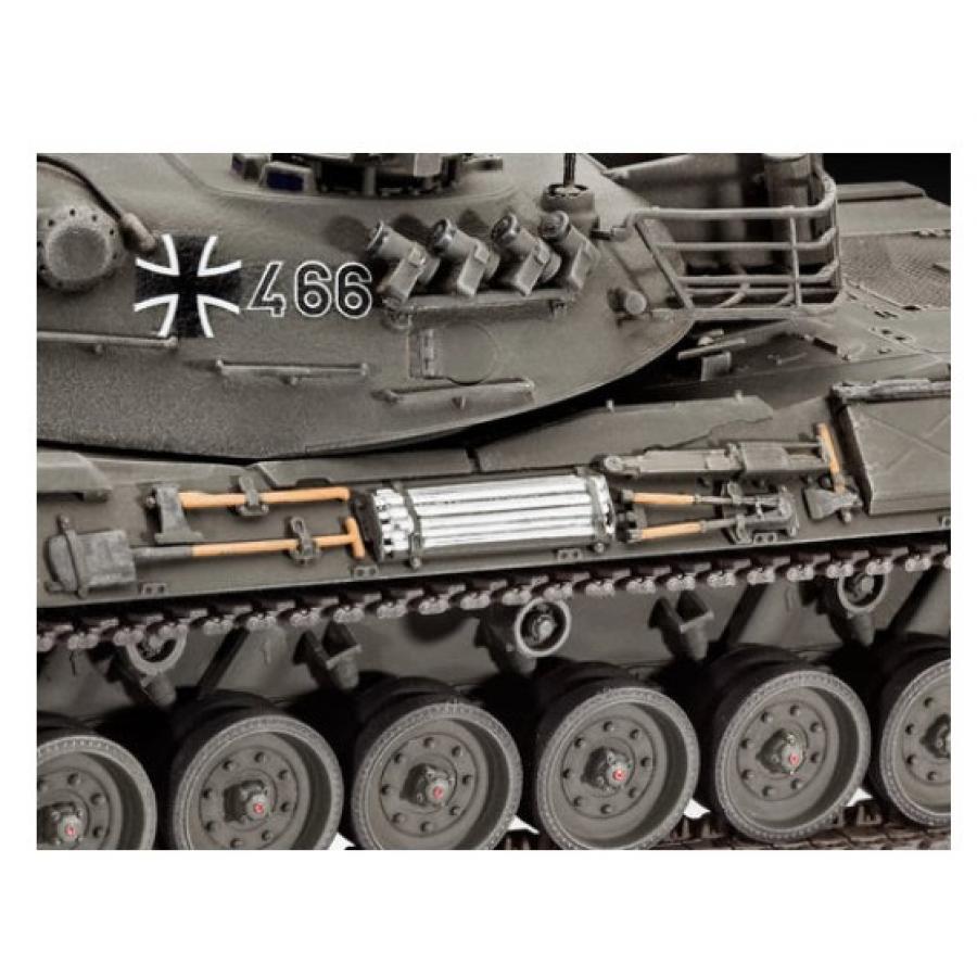 Κιτ μοντέλου του πρώτου κύριου άρματος μάχης που αναπτύχθηκε στη Γερμανία μετά τον Δεύτερο Παγκόσμιο Πόλεμο. - Αντιστοιχεί στις παρτίδες 2 έως 4 - Προαιρετικά εξαρτήματα για τη γερμανική, βελγική και ολλανδική έκδοση - Εύκολη συναρμολόγηση ερπύστριας βινυλίου - Περιστρεφόμενος πυργίσκος - Πιστόλι ευθυγράμμισης ανύψωσης Αυθεντική αναπαράσταση των ακόλουθων εκδόσεων: - Leopard 1 (2η παρτίδα), Bundeswehr, PzBtl 194, Handorf, 1969 - Leopard 1 (4η παρτίδα), Bundeswehr, PzBtl 153, Koblenz, 1972 - Leopard 1, 4th Lancers Reg, 16e Pantser Div, Soest, 1969 - Leopard 1, A Eskadron / 41 Tankbataljon, Bergen-Hohne, 1977 Εκτός από τα βασικά χρώματα, περιλαμβάνονται επίσης κόλλα και πινέλα.